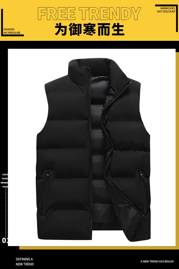 국경 간 조끼 남성 겨울 스탠드 칼라 트렌디 한 조끼 조끼 단색 남성용 두꺼운 코트 따뜻한 민소매면 패딩 코트스토어 가기