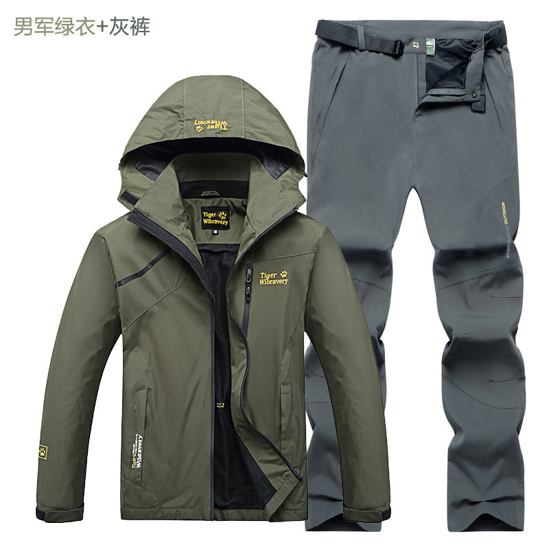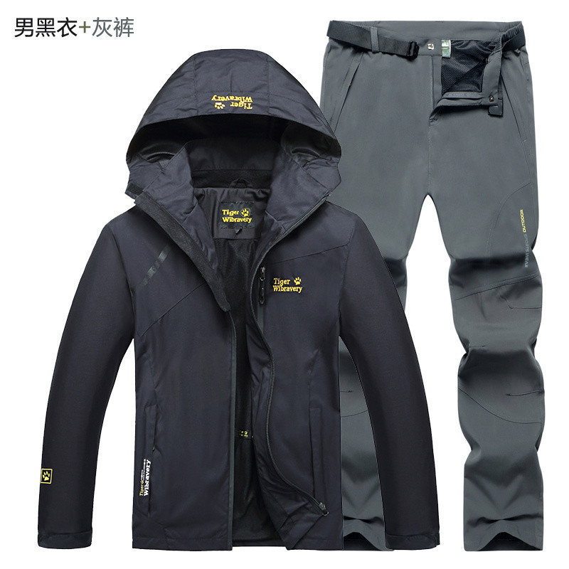 R9T 야외 러시 의류 남성과 여성의 봄과 가을 얇은 커플 재킷 등산 세트 러시 의류 세트 스포츠 보호스토어 가기