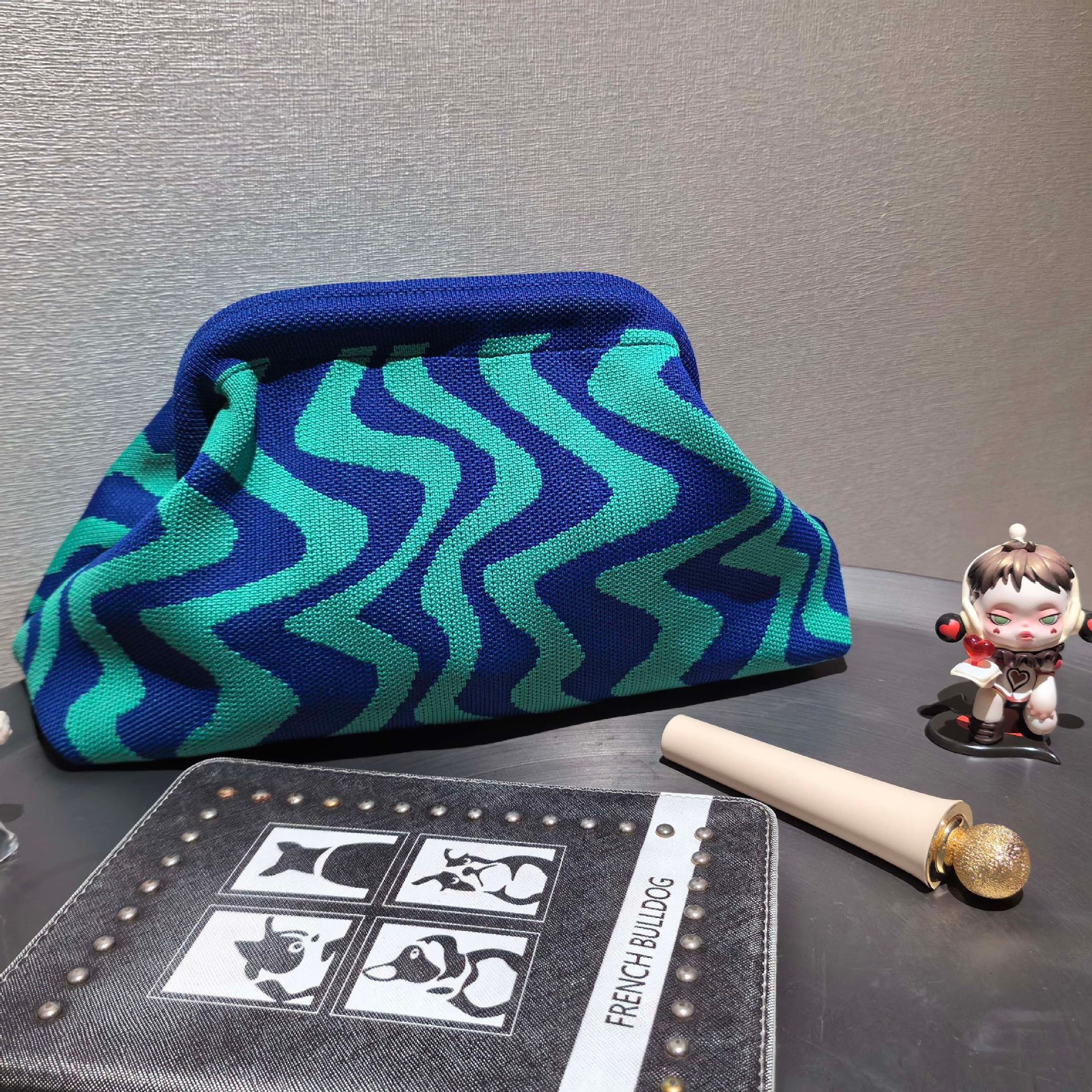 국경 간 폭발성 웨이브 니트 핸드백 화장품 가방 스트라이프 대용량 매일 올 매치 클립 백