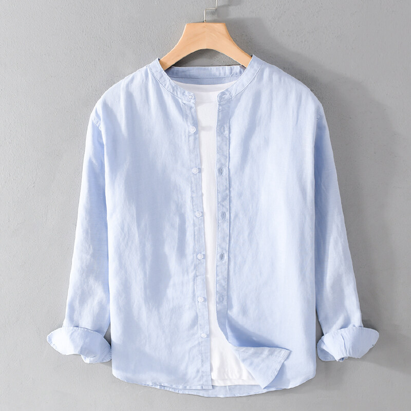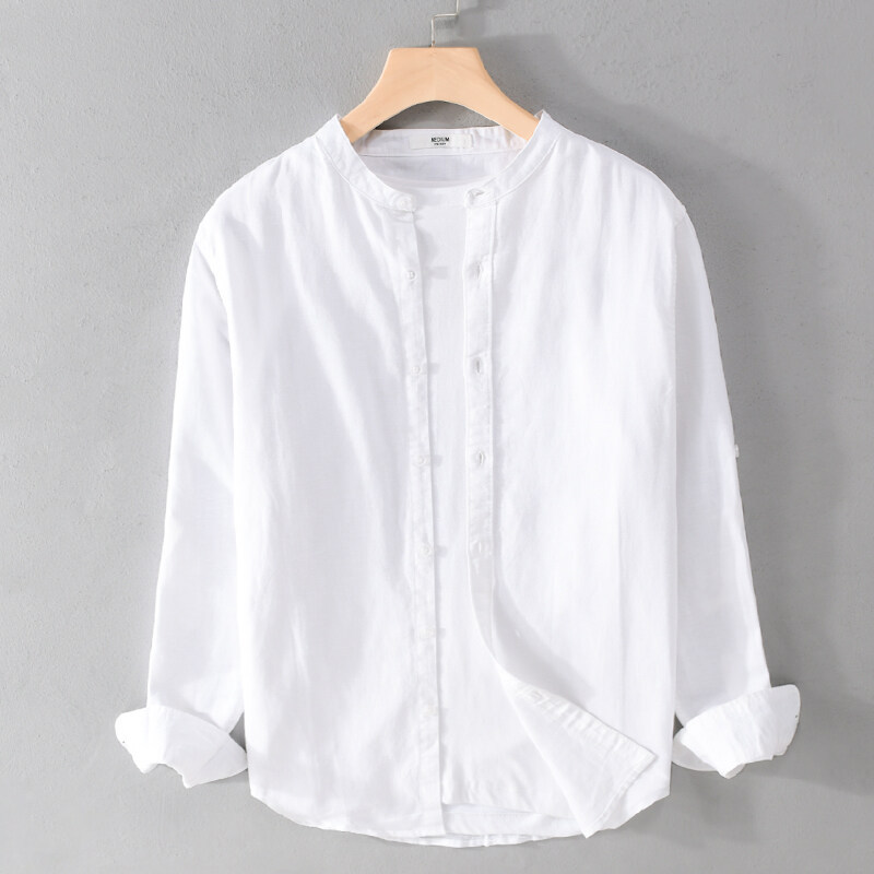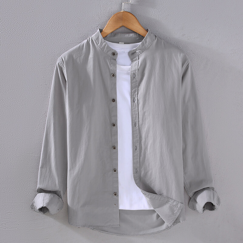 순수 코튼 셔츠 남성 한국 스타일 유행 단색 수직 칼라 내부 재킷 봄과 가을 느슨한 캐주얼 포켓 셔츠 재킷
