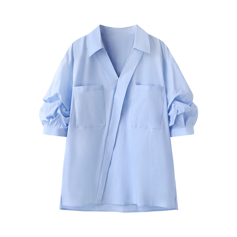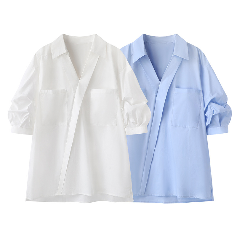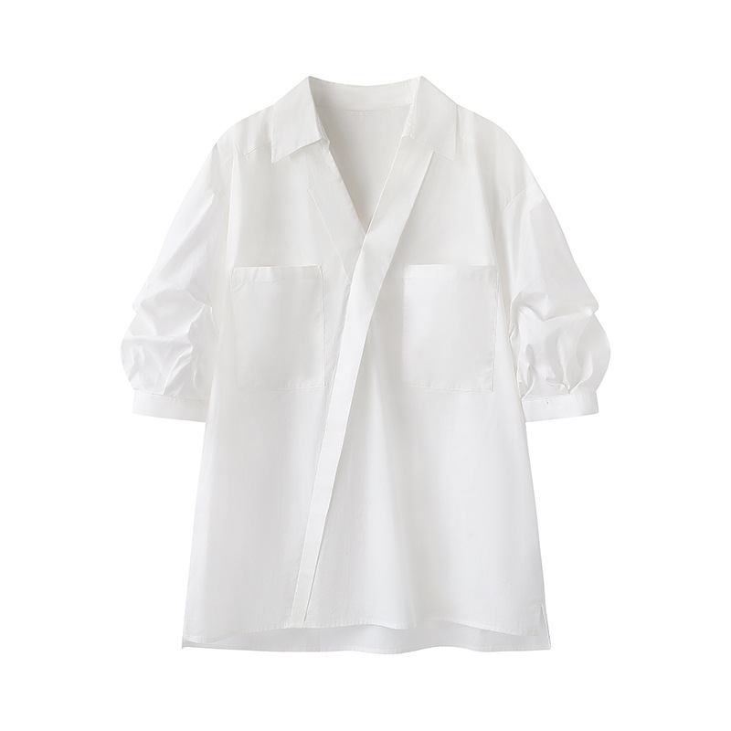화이트 디자인 센스 V 넥 셔츠 여성의 2025 봄 새로운 느슨한 슬리밍 하이 엔드 탑스토어 가기