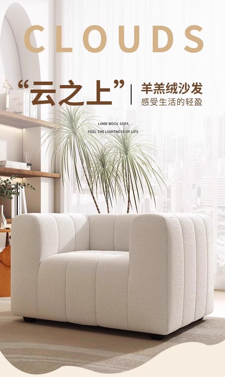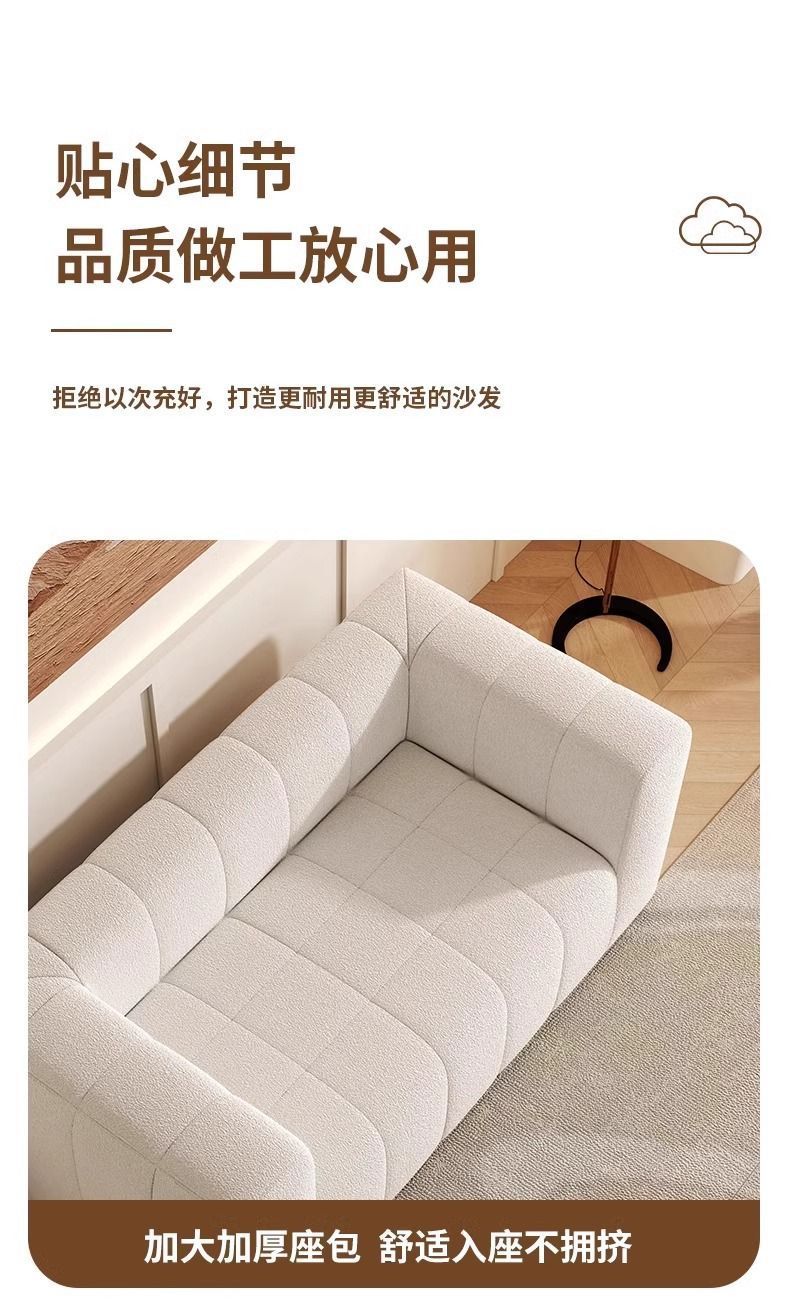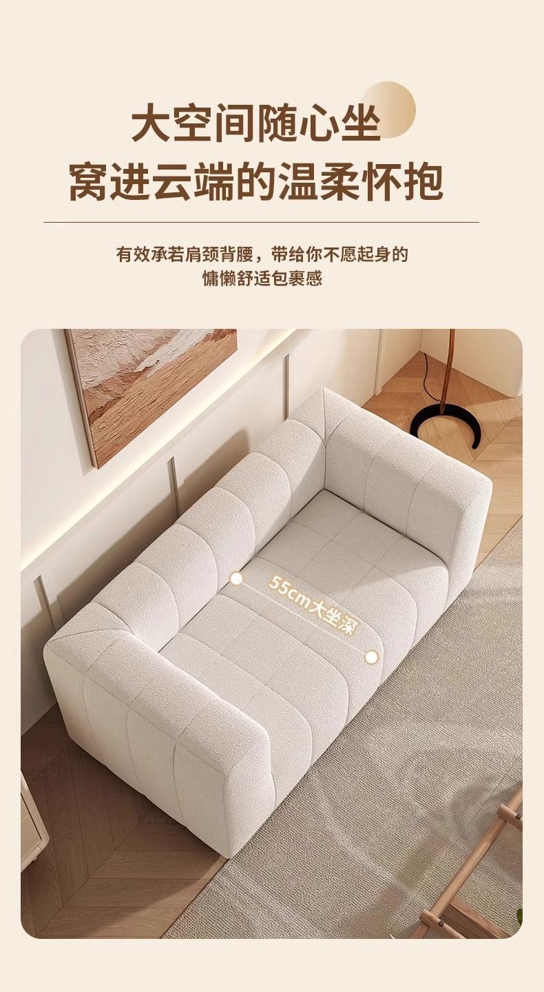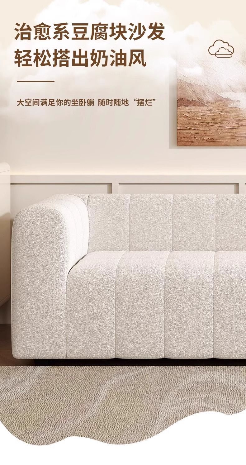 크림 스타일 간단한 직물 소파 홈 거실 발코니 회의 긴 소파 작은 아파트 두부 블록 인터넷 축하 소파스토어 가기