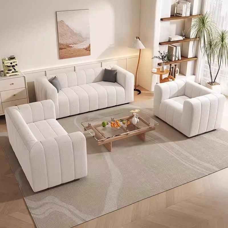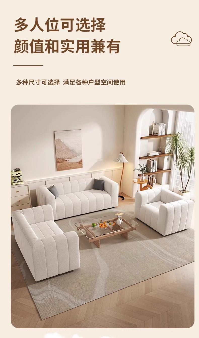 크림 스타일 간단한 직물 소파 홈 거실 발코니 회의 긴 소파 작은 아파트 두부 블록 인터넷 축하 소파