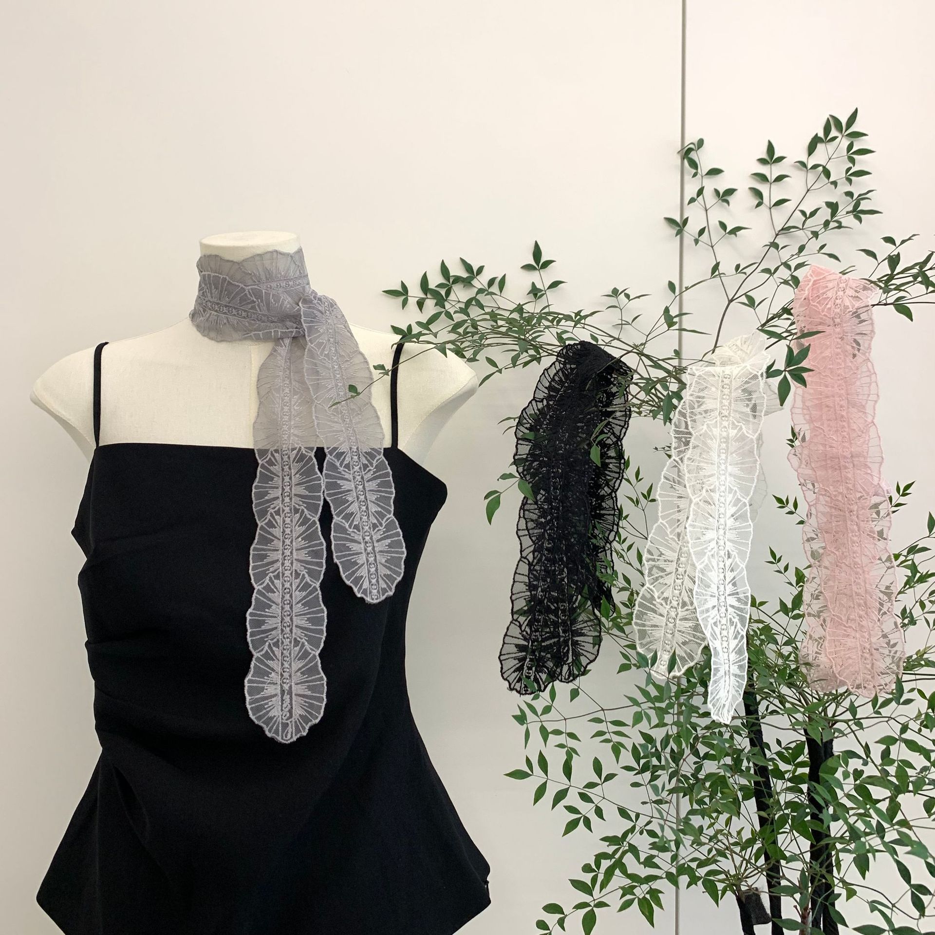 빈티지 레이스 리본 하이 엔드 센스 벨트 헤어 밴드 긴 리본 여성용 장식 스카프 작은 실크 스카프 목걸이 패션 헤어 헤어