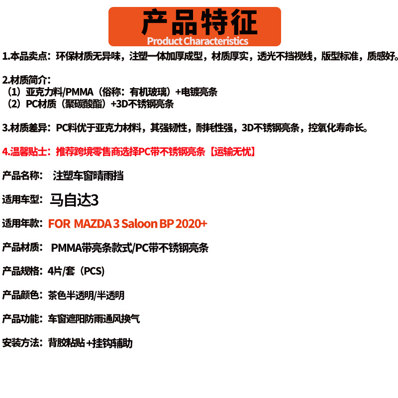 • MAZDA 3 Axela 2020+ PS(실버 브라이트 스트립 윈도우 레인 쉴드 포함)