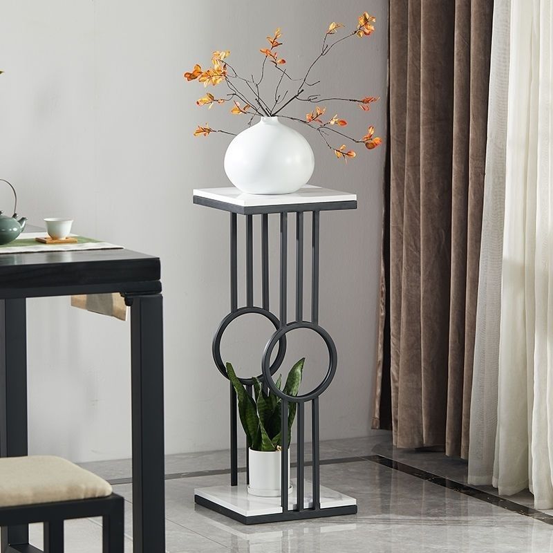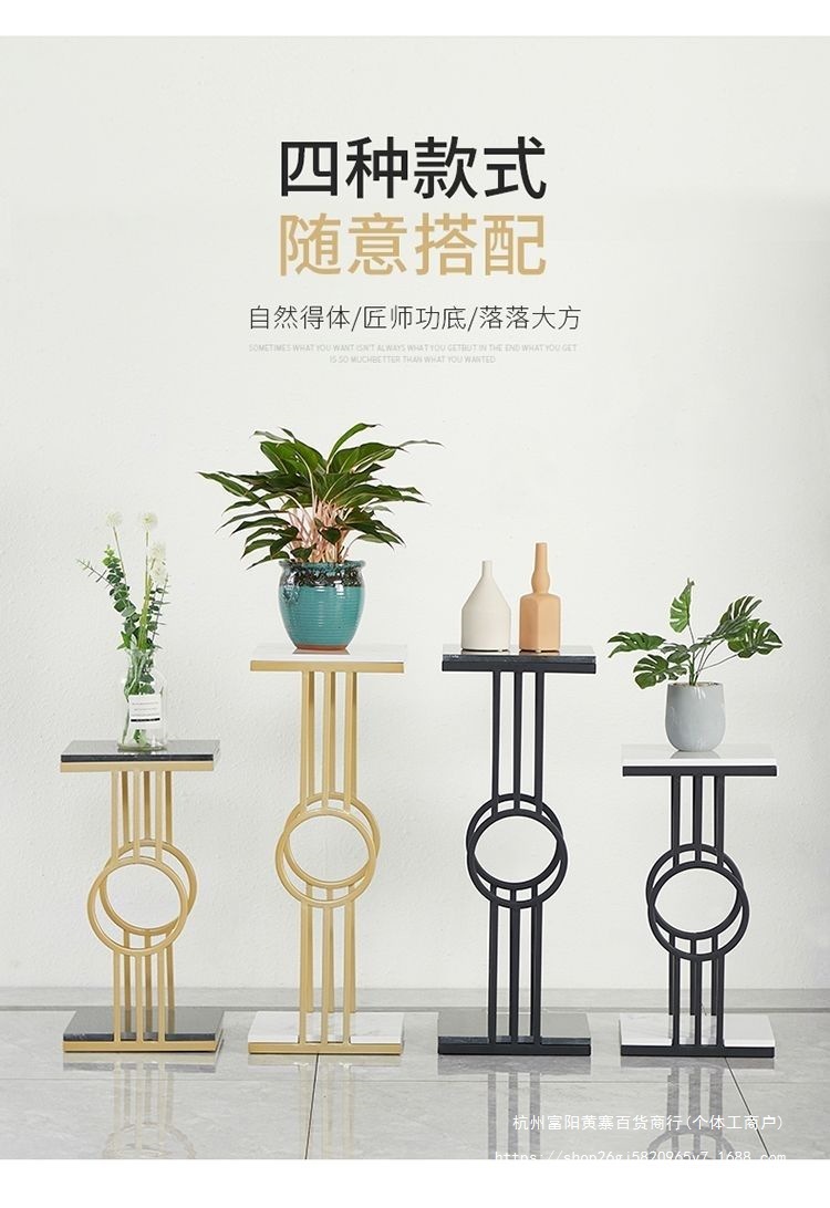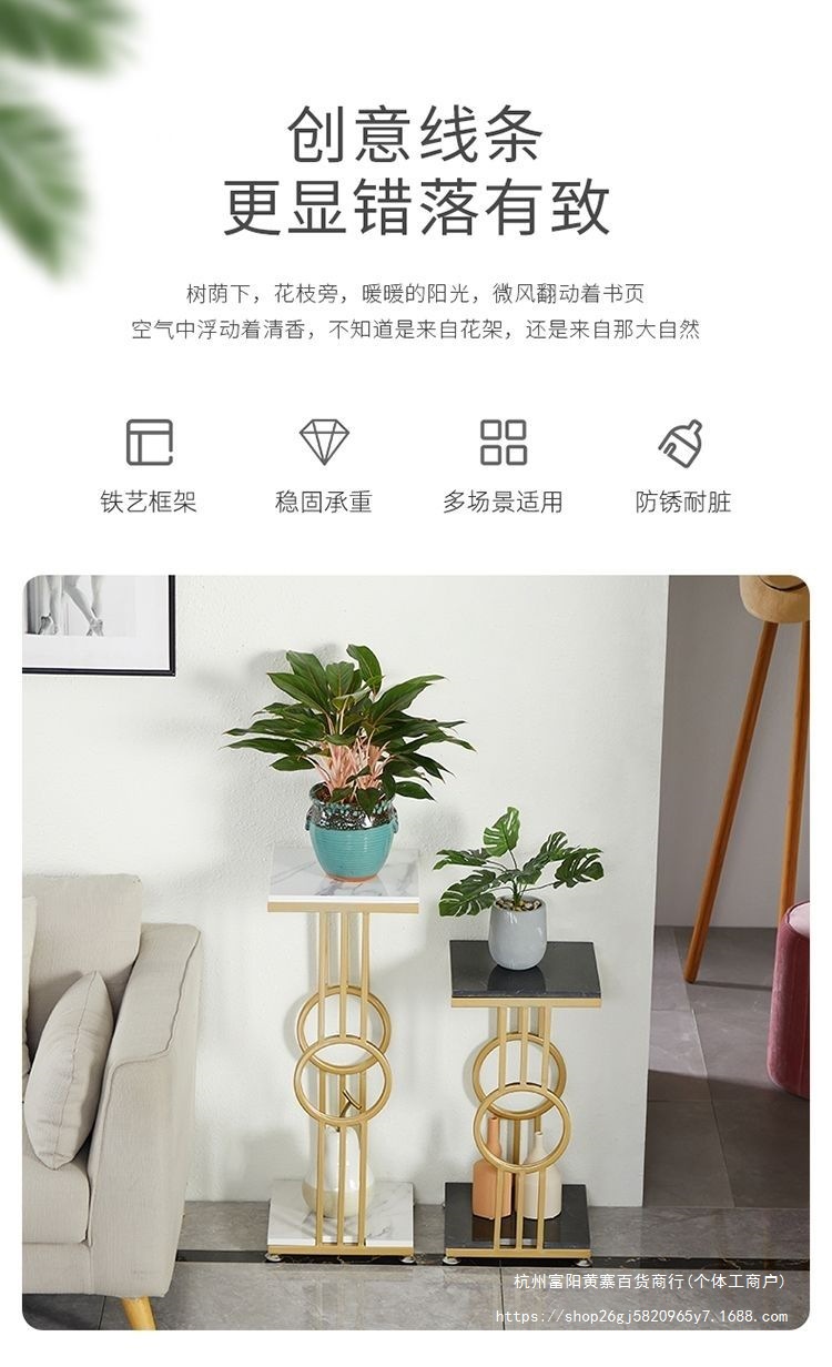 북유럽 거실 발코니 바닥 스탠딩 대리석 디스플레이 철 꽃 선반 간단한 TV 사이드 그린 로즈 다층 꽃 랙