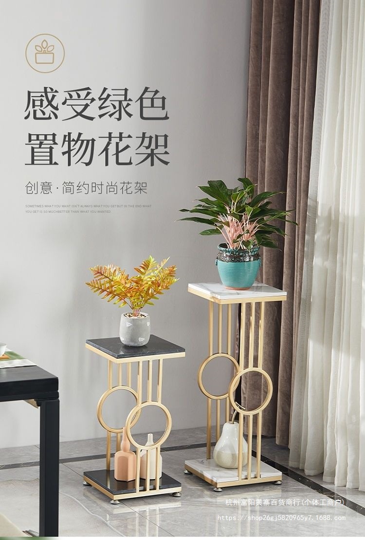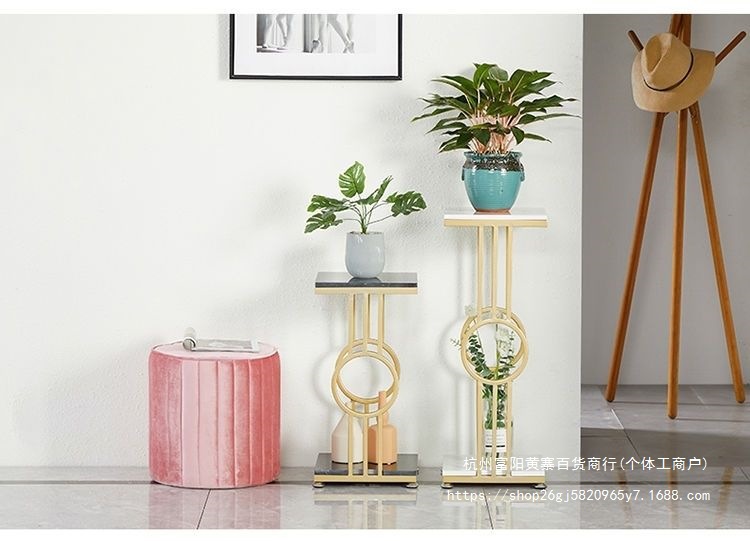 북유럽 거실 발코니 바닥 스탠딩 대리석 디스플레이 철 꽃 선반 간단한 TV 사이드 그린 로즈 다층 꽃 랙스토어 가기
