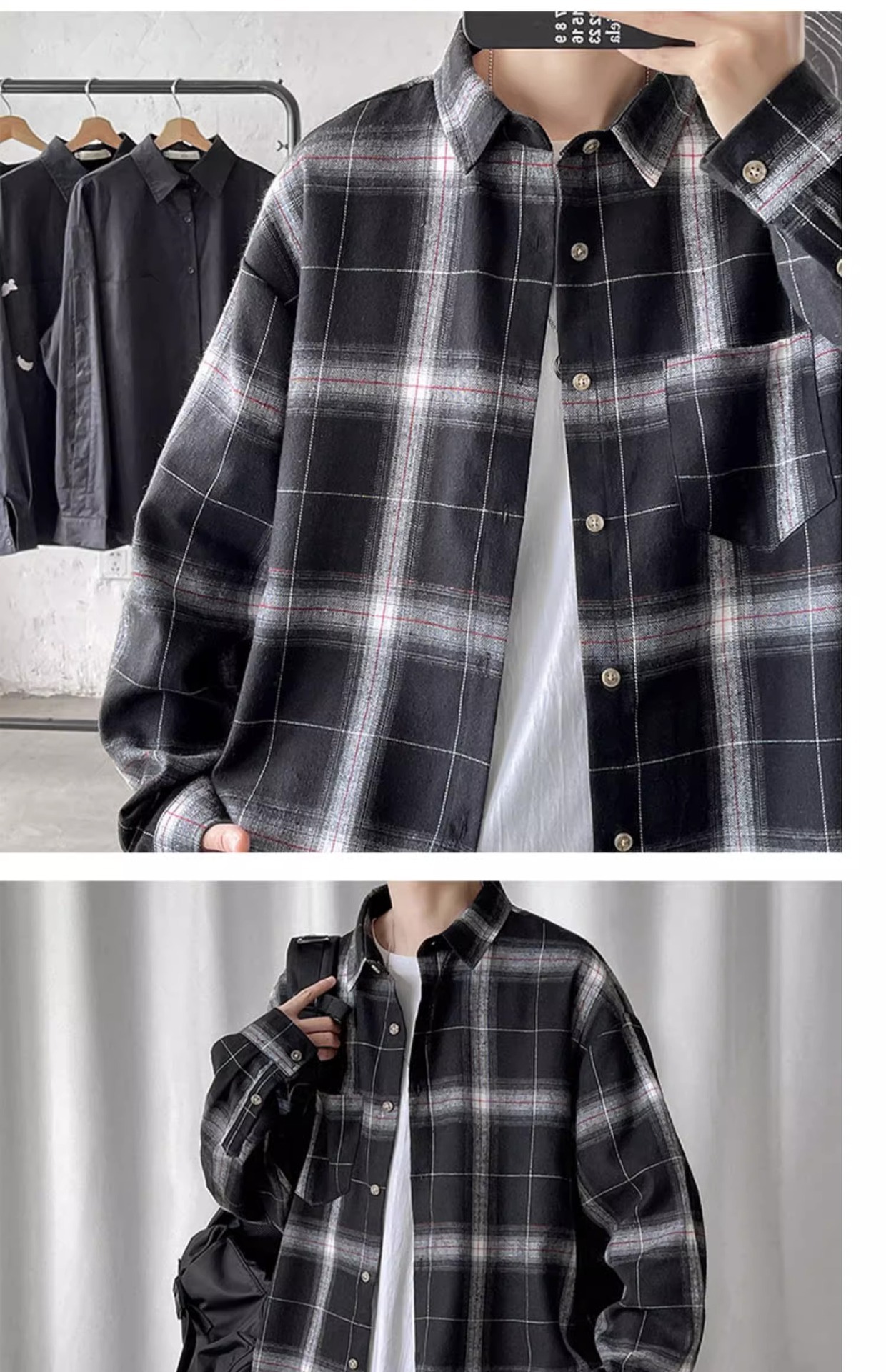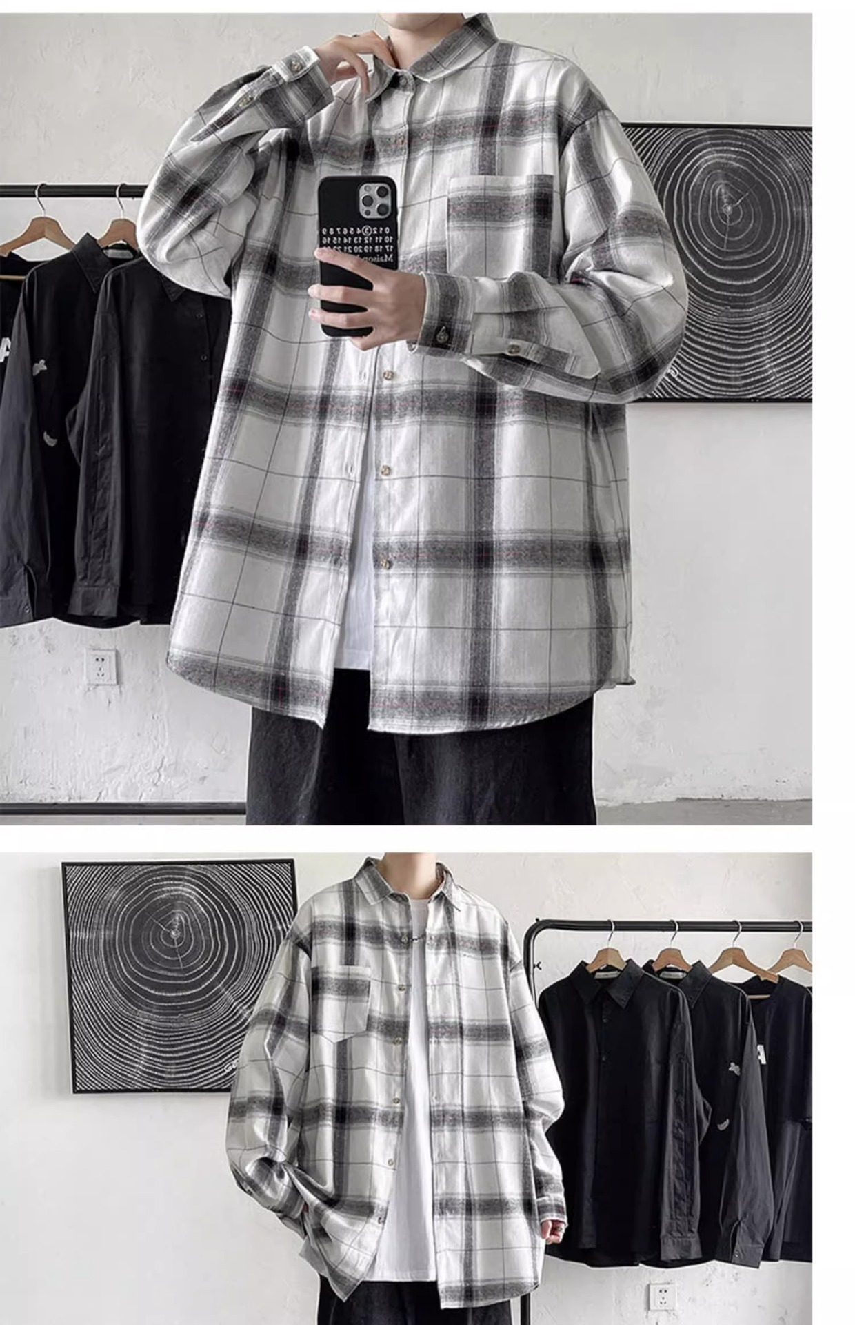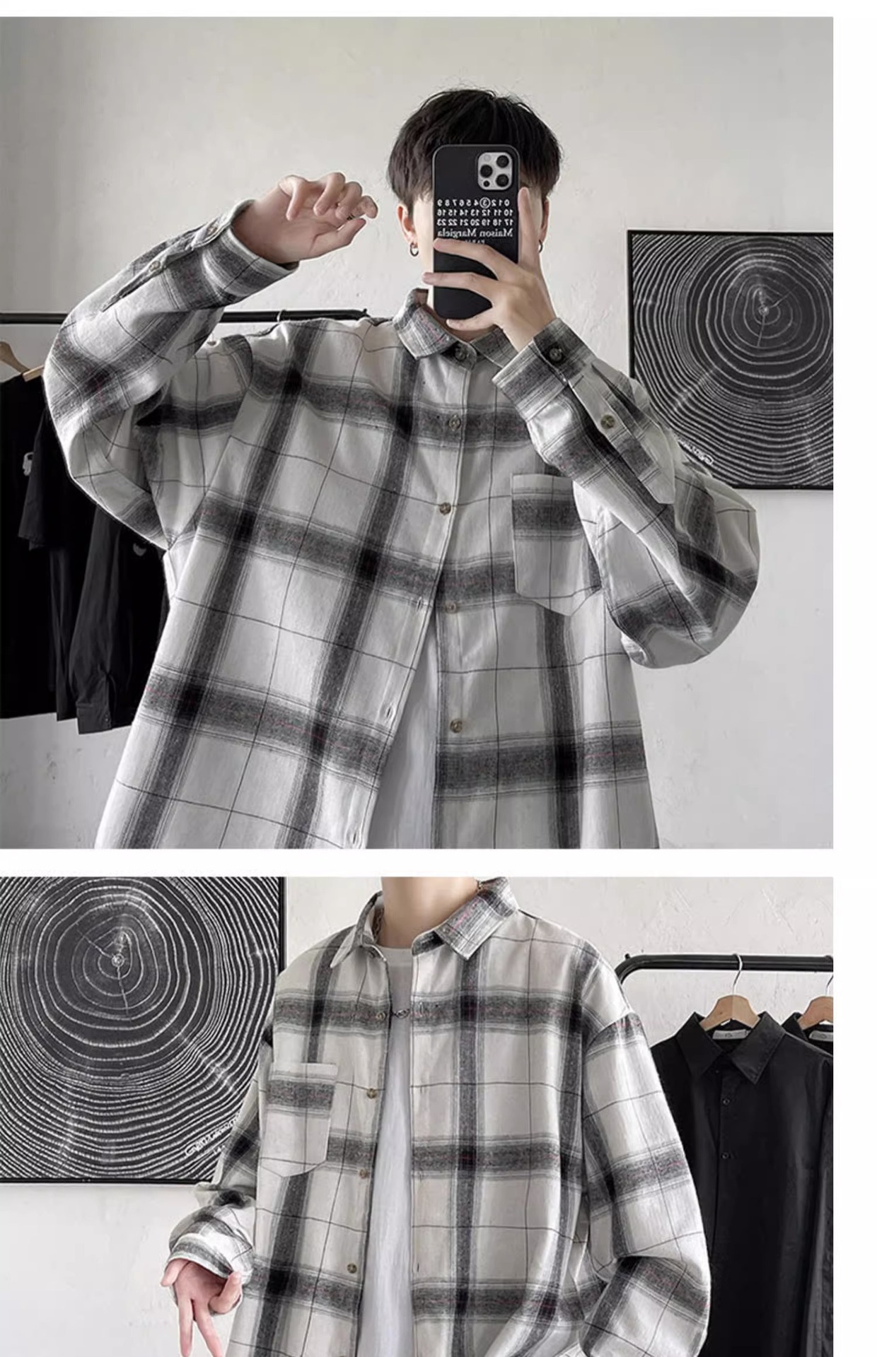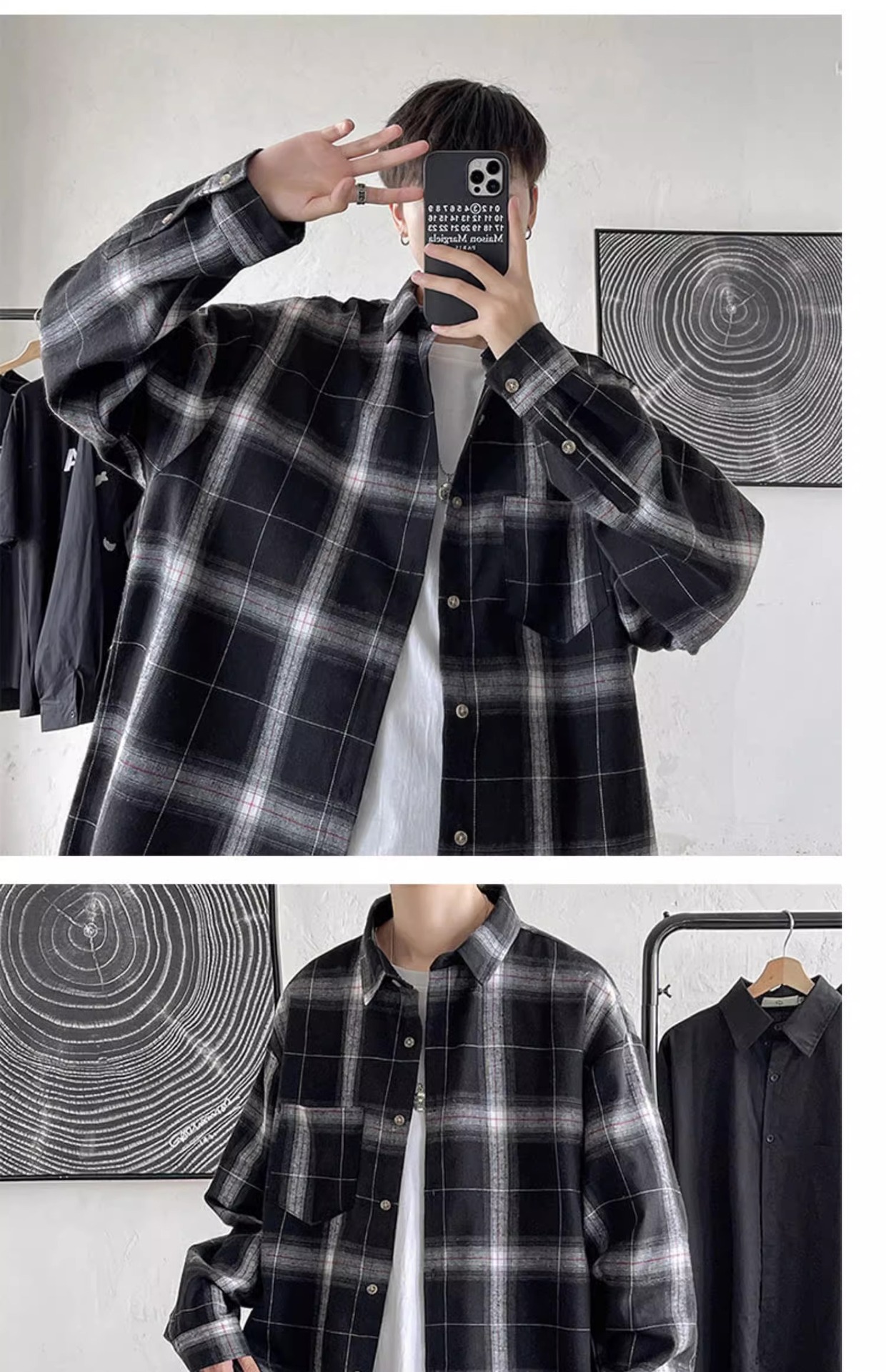 [쇼핑] PH 국경 남성 의류 소년 봄과 가을 패션 격자 무늬 느슨한 캐주얼 긴 소매 셔츠스토어 가기