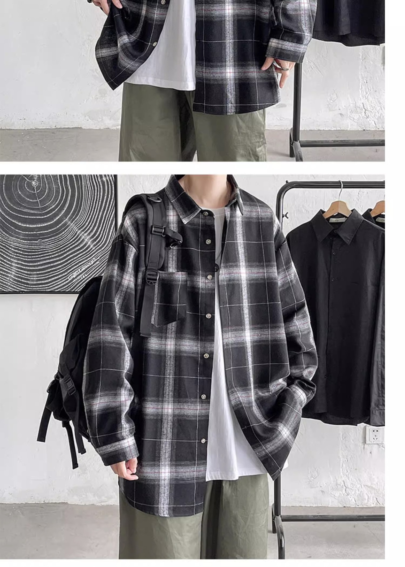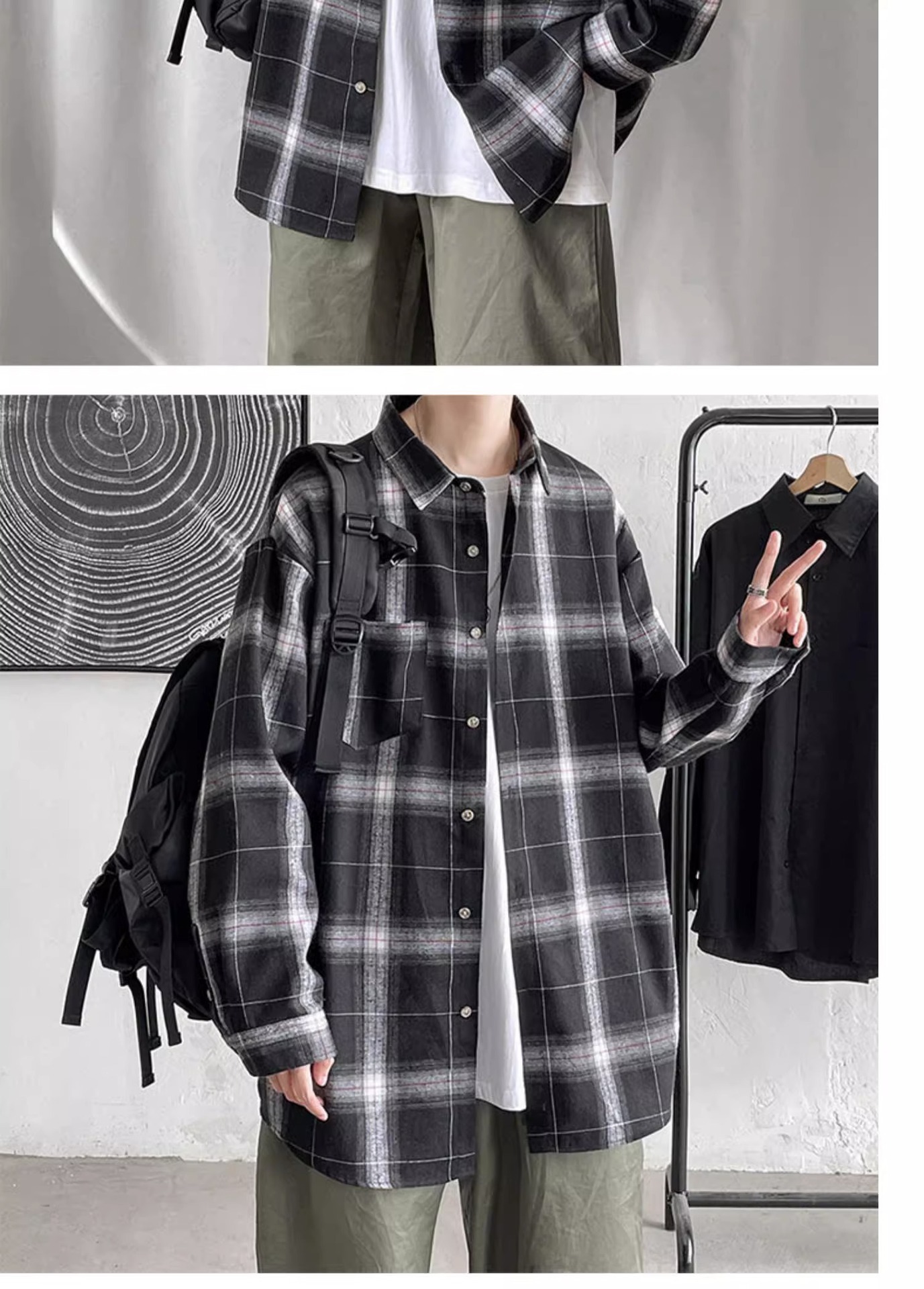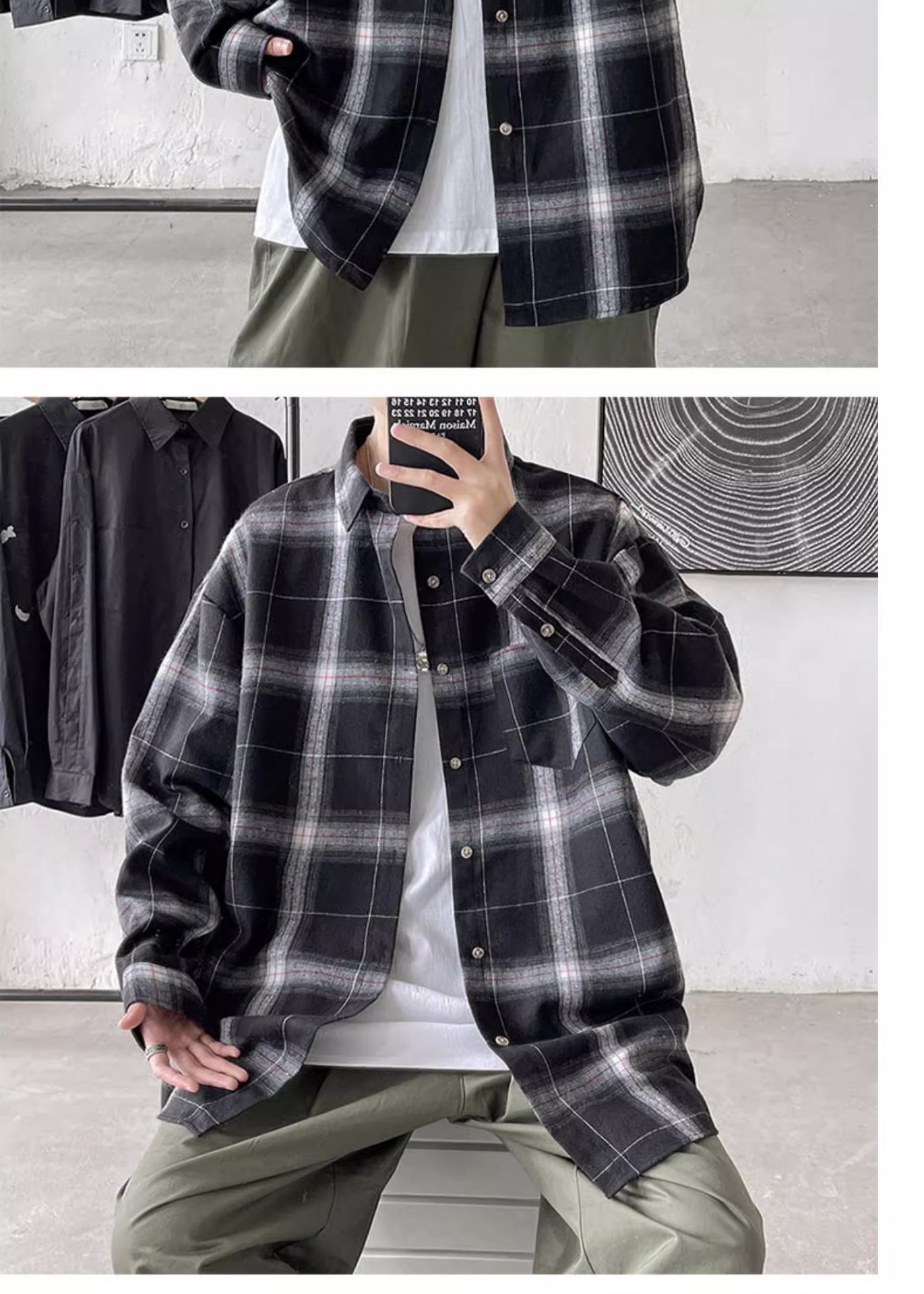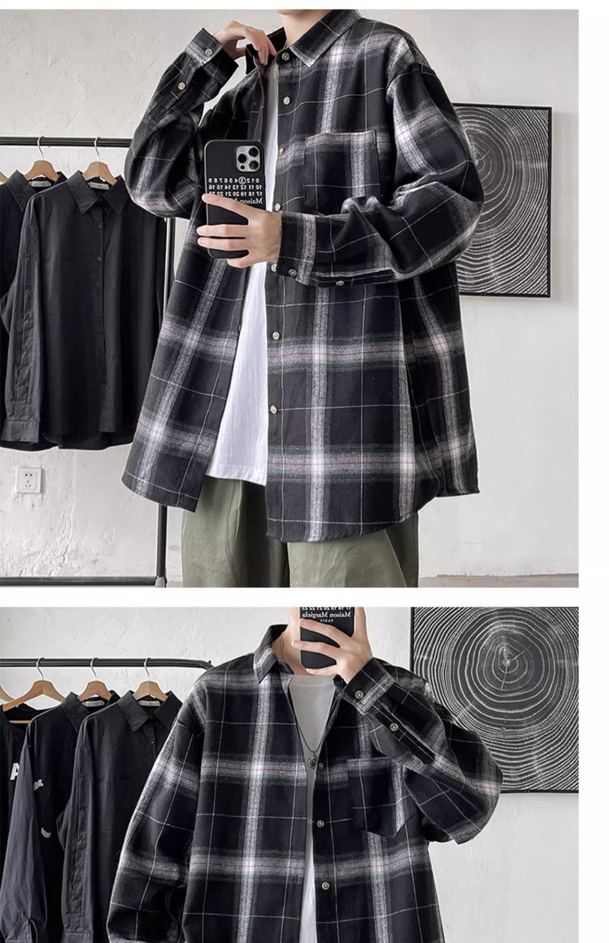 [쇼핑] PH 국경 남성 의류 소년 봄과 가을 패션 격자 무늬 느슨한 캐주얼 긴 소매 셔츠스토어 가기