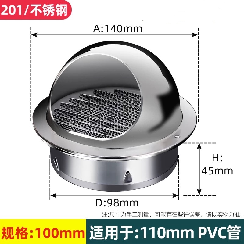 • 304 두꺼운 100 환기 캡 - 110pvc 파이프에 적합