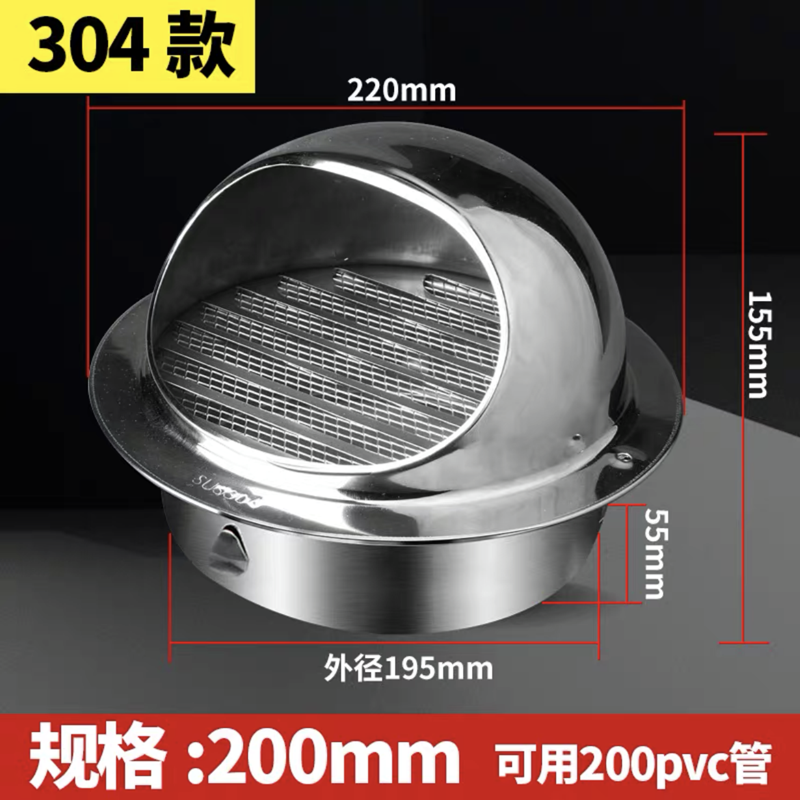 • 304 두꺼운 195 환기 캡 - 200pvc 파이프에 적합