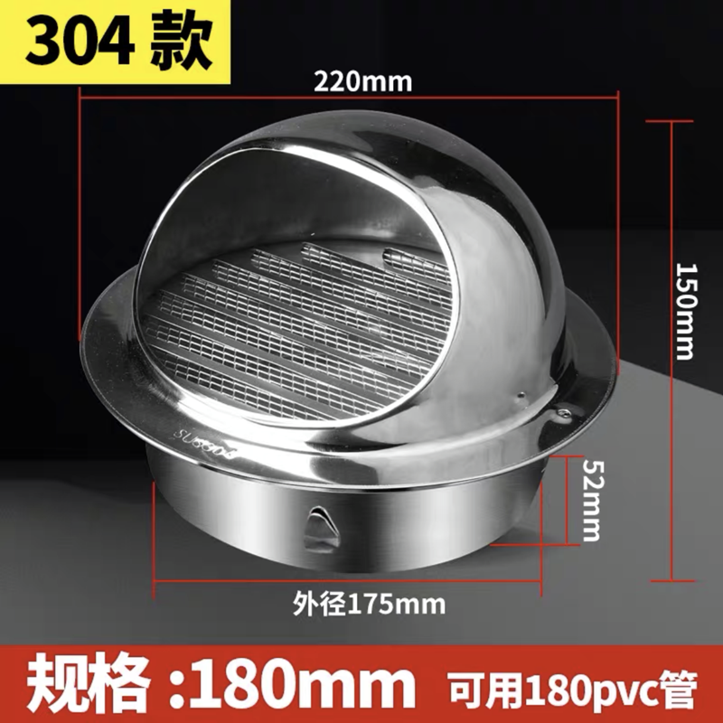 • 304 두꺼운 175 환기 캡 - 180pvc 파이프에 적합