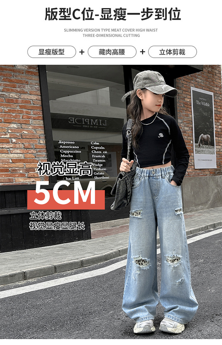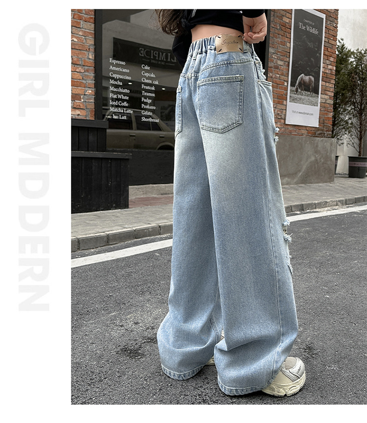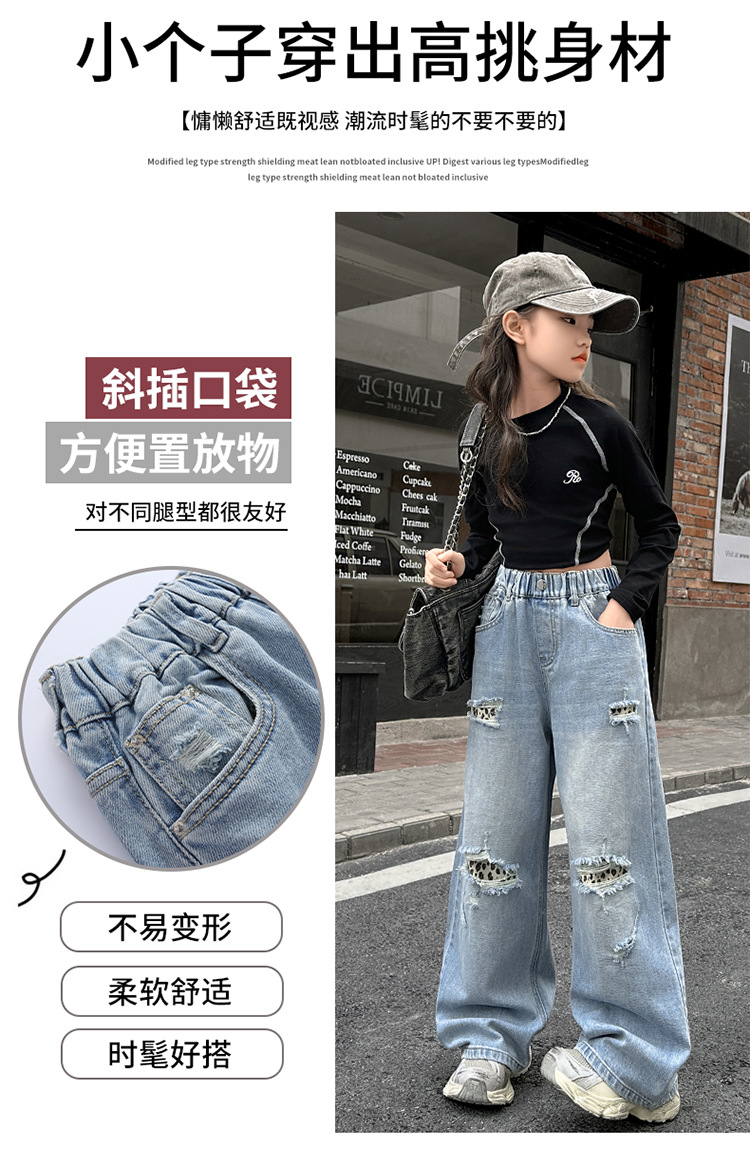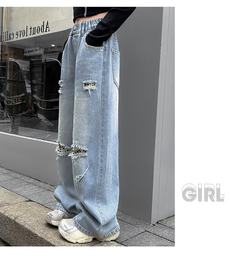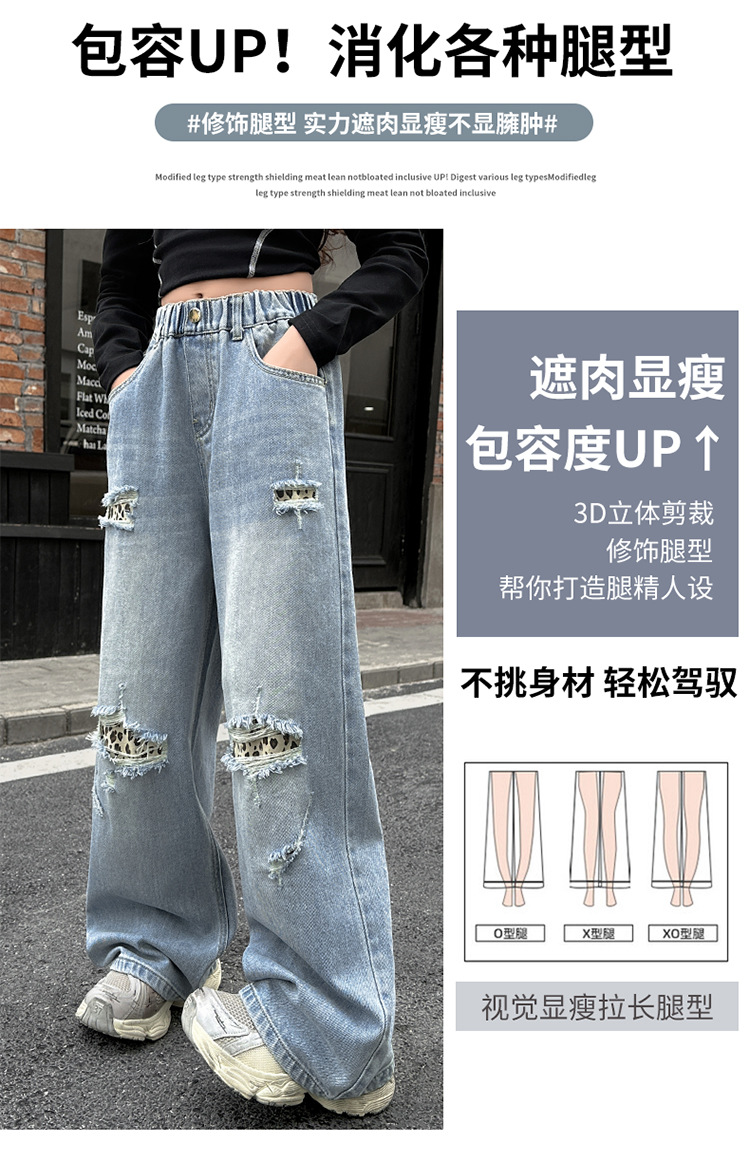 소녀 찢어진 청바지 봄 새로운 2025 서양식 대형 어린이 레오파드 무늬 청바지 도매 트렌디스토어 가기