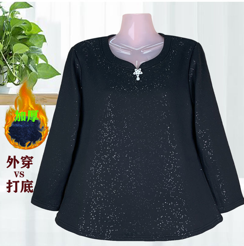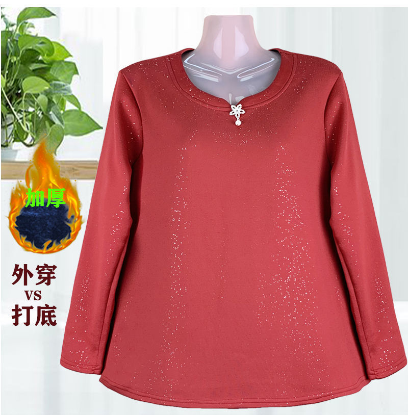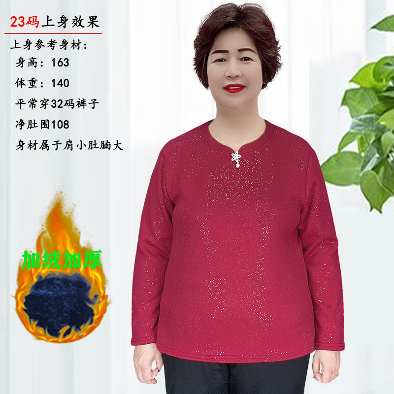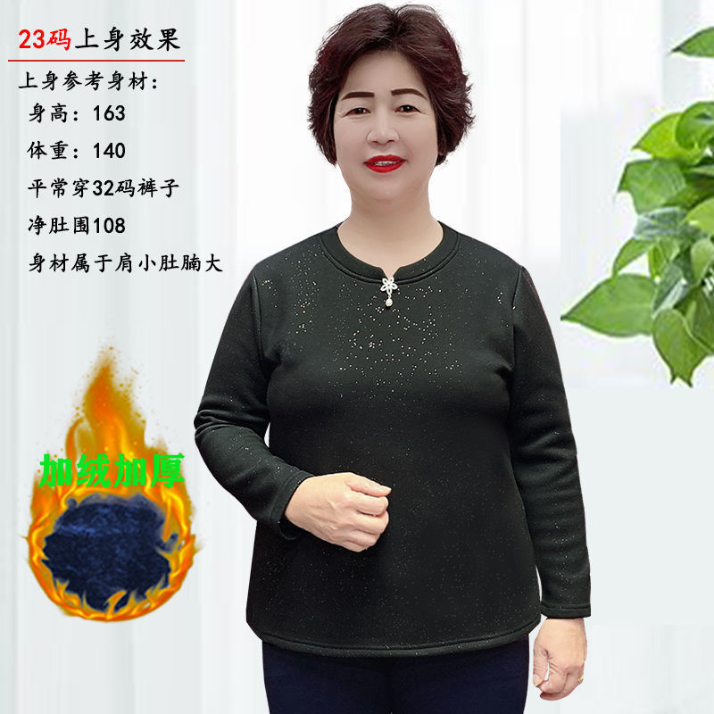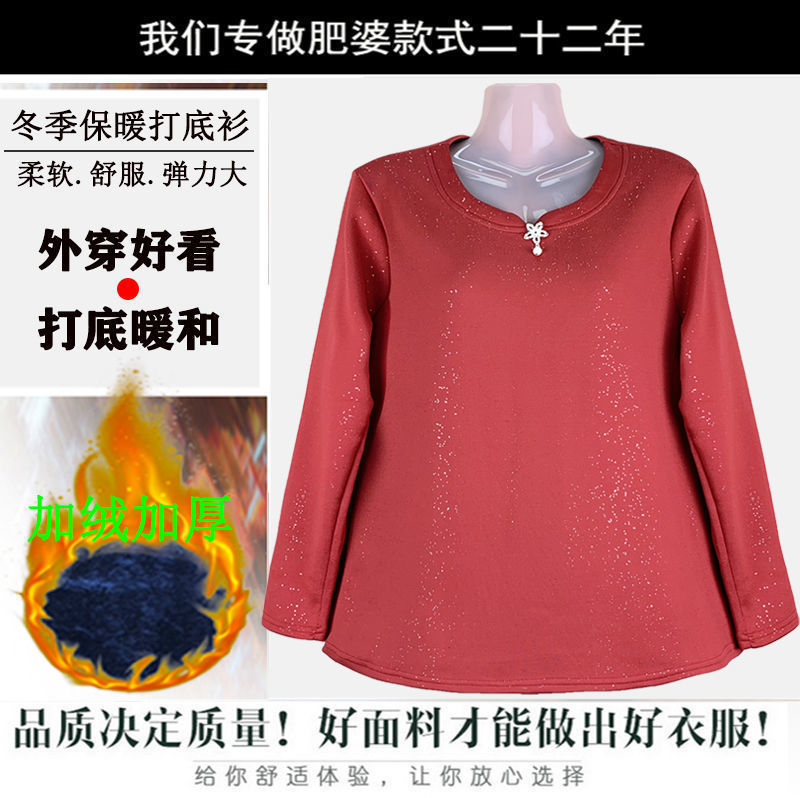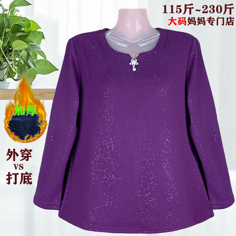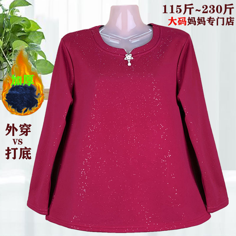 300kg 플러스 사이즈 긴팔 티셔츠 여성용 느슨한 어머니 겨울 의류 200kg 따뜻한 단색 겉옷 기모 기본 셔츠 250스토어 가기