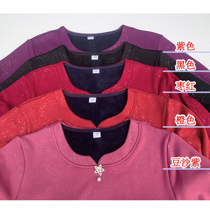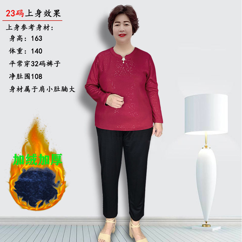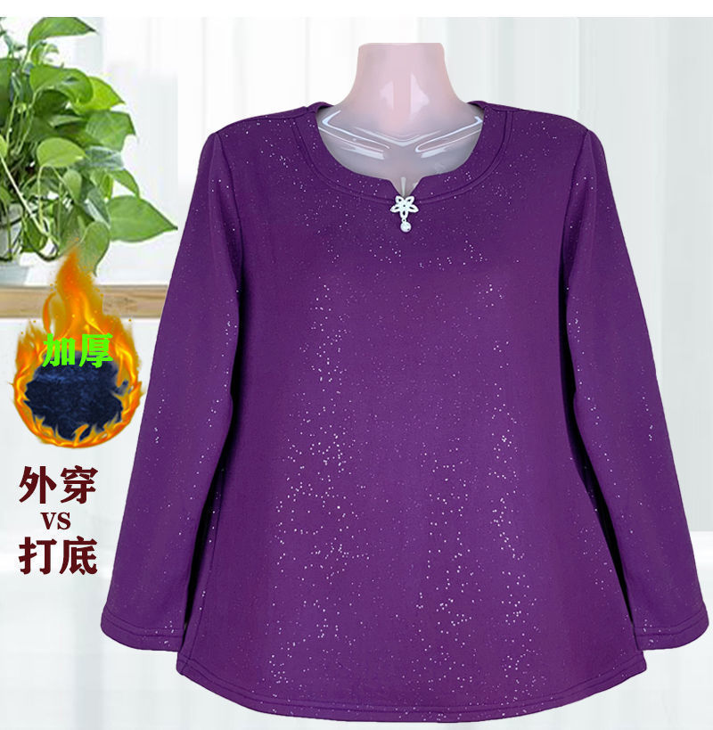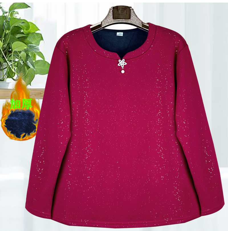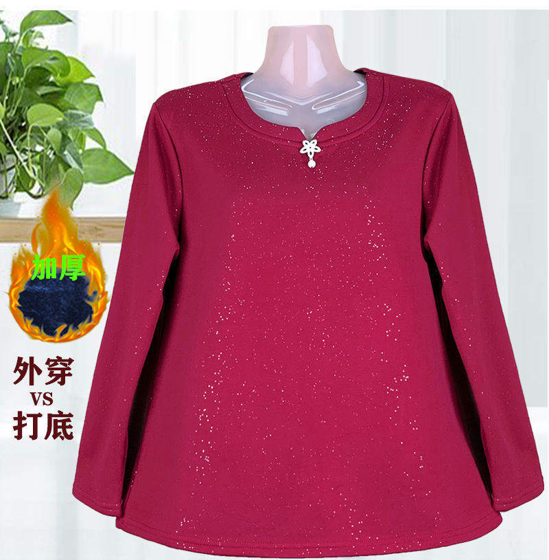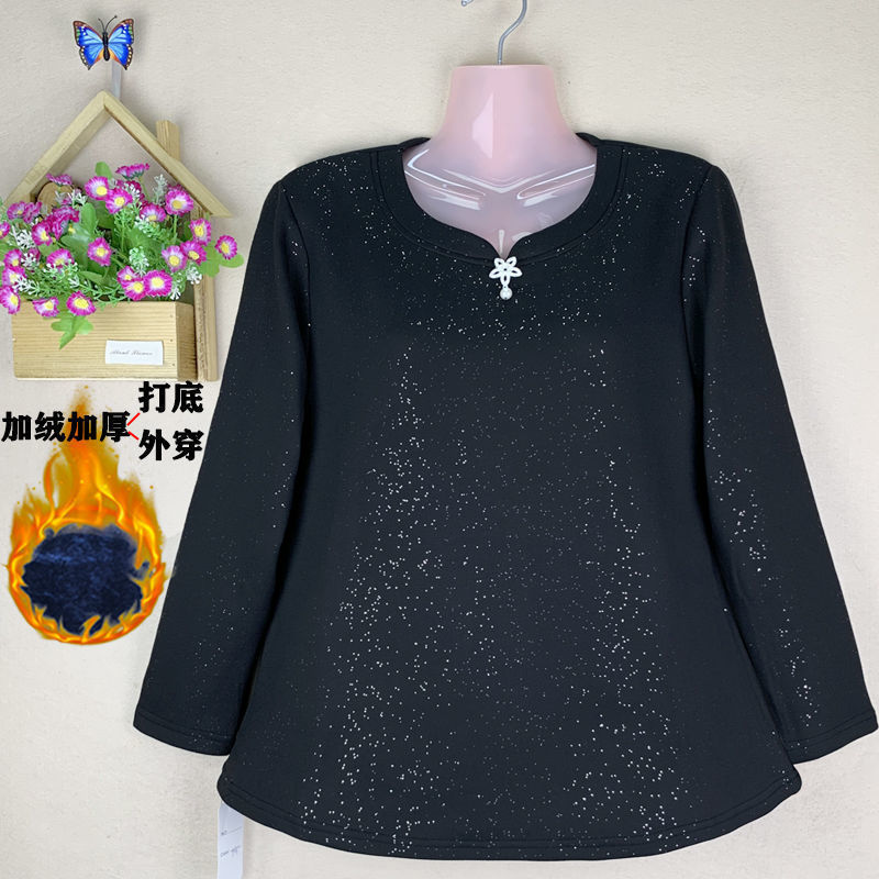 300kg 플러스 사이즈 긴팔 티셔츠 여성용 느슨한 어머니 겨울 의류 200kg 따뜻한 단색 겉옷 기모 기본 셔츠 250스토어 가기
