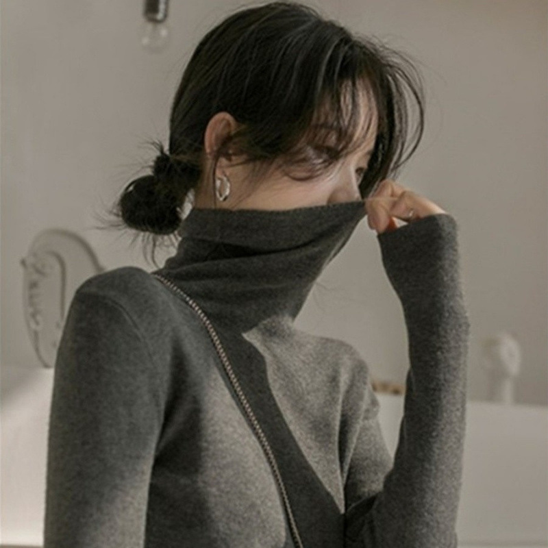 디자인 센스 가을과 겨울 더미 높은 칼라 니트 스웨터 풀오버 스웨터 여성 내베이스 셔츠 서양식 슬림 핏 긴팔 탑스토어 가기