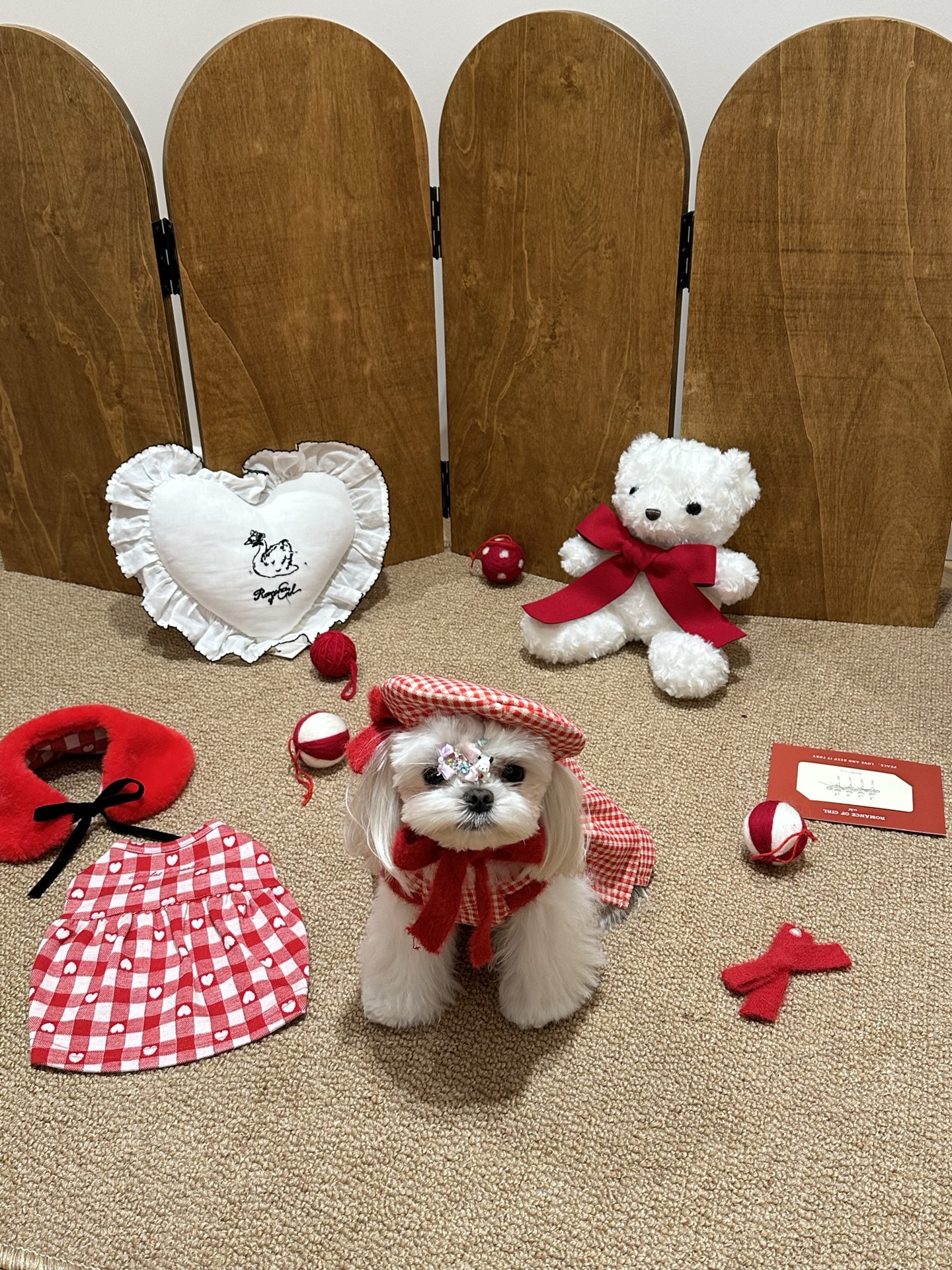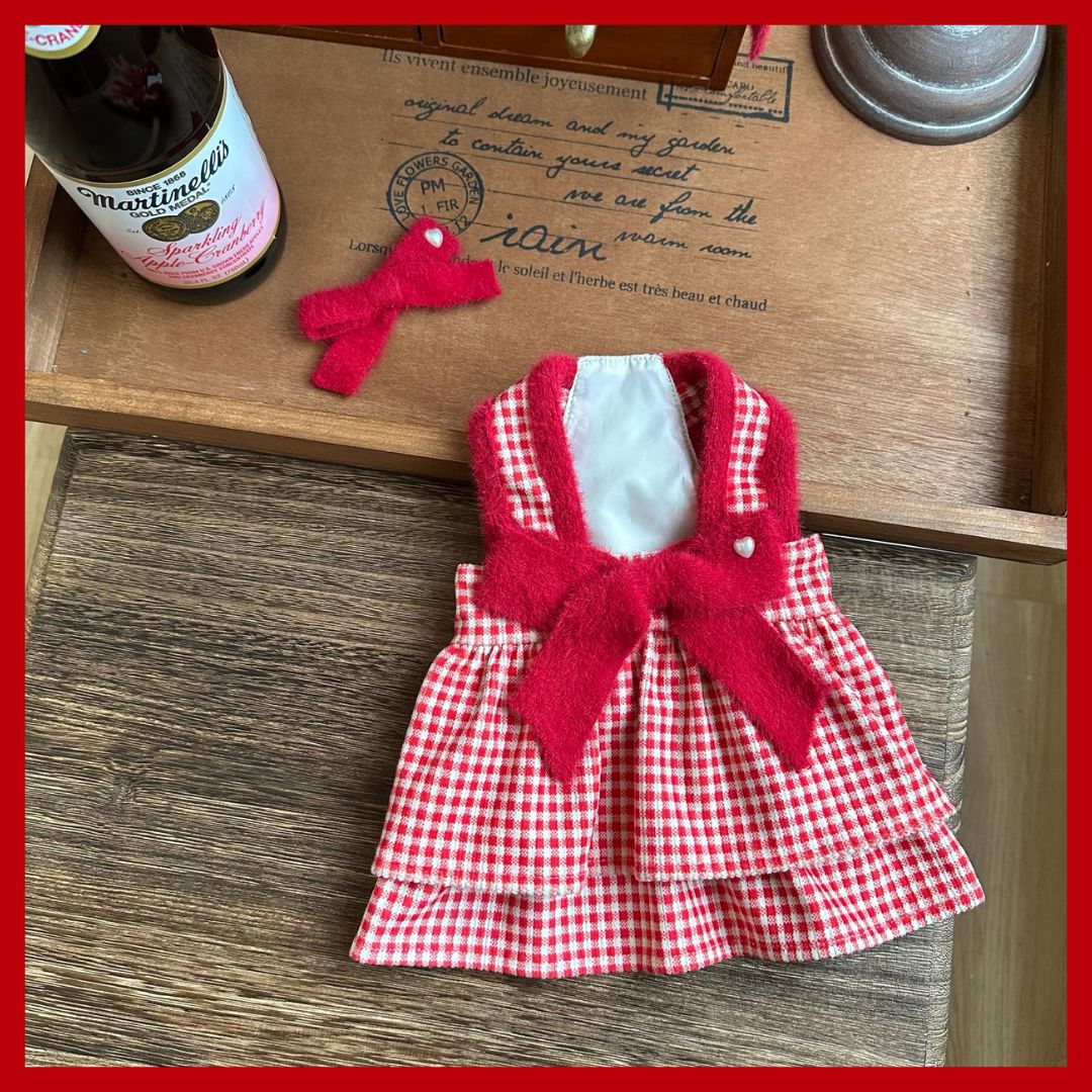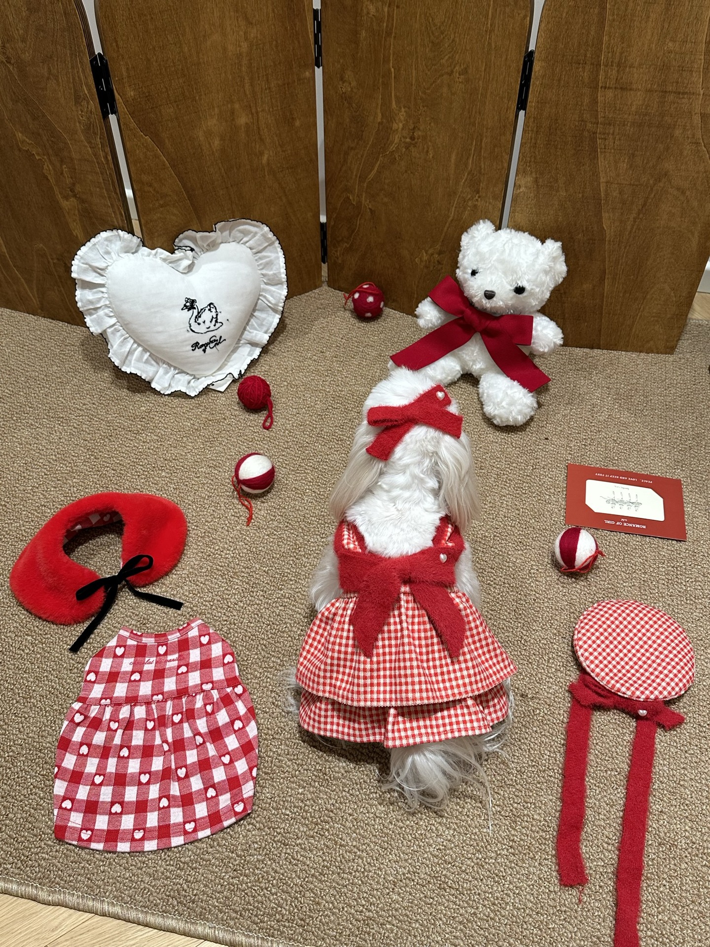 点缀的毛边还有蝴蝶结是特意定制的,原本进口版也可以达到一样效果,奈何价格太高还是国产版更有性价比,特意染色调成一样的红色