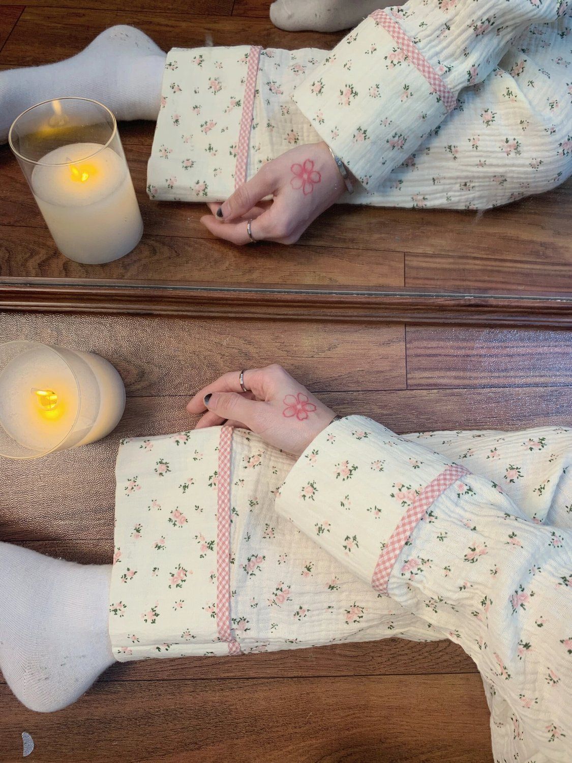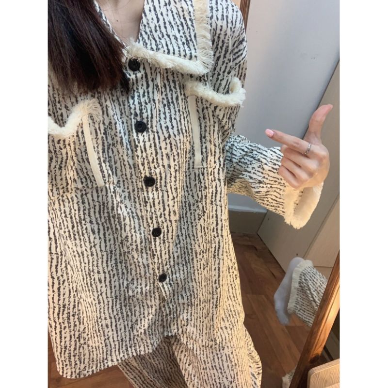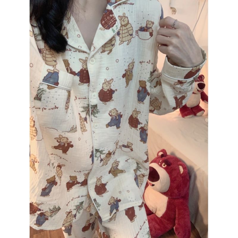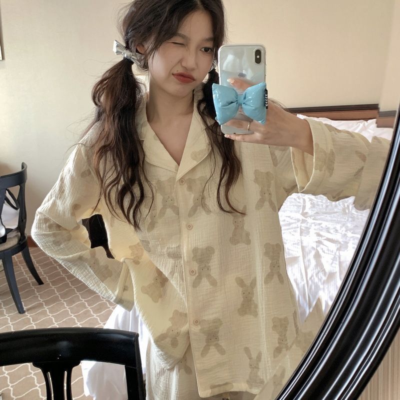 달콤한 꽃 파자마 여성의 봄과 가을 새로운 긴 소매 바지 Ins 일본 스타일 간단한 학생 홈 의류 세트 외부 착용스토어 가기