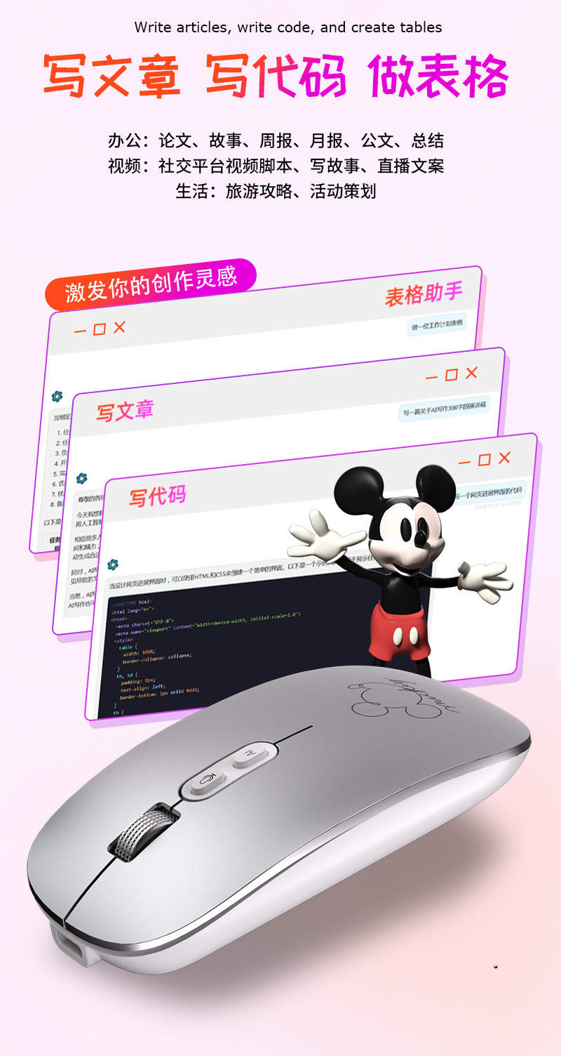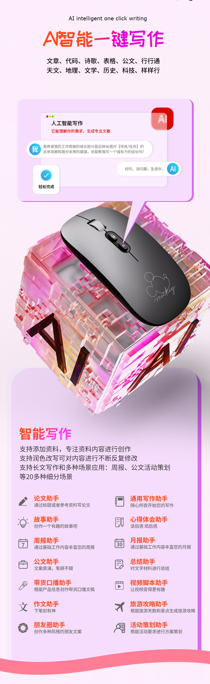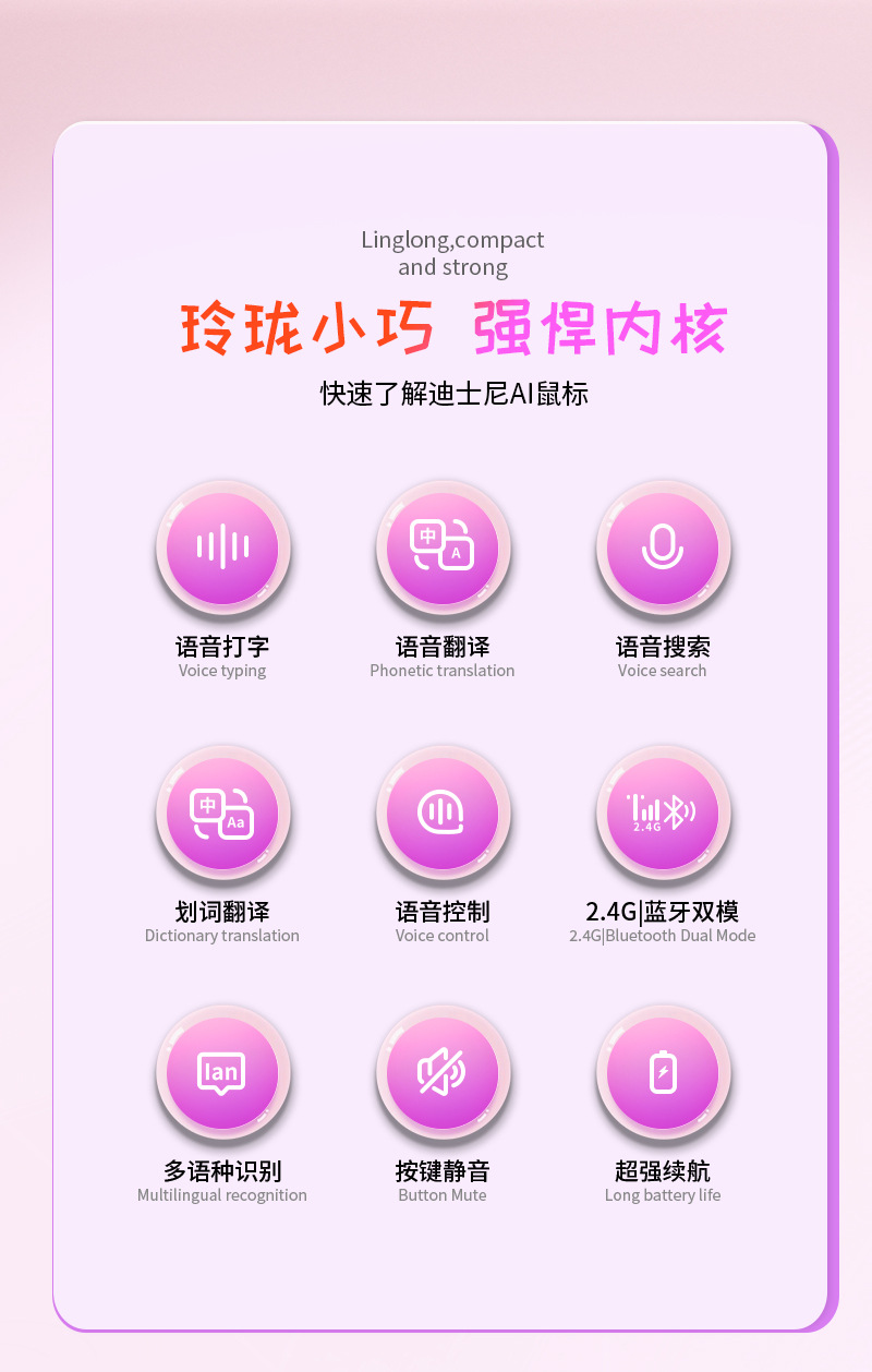 2025 새로운 AI 음성 스마트 마우스 블루투스 무선 음성 제어 번역 입력 PPT 작성 사무실 일반스토어 가기