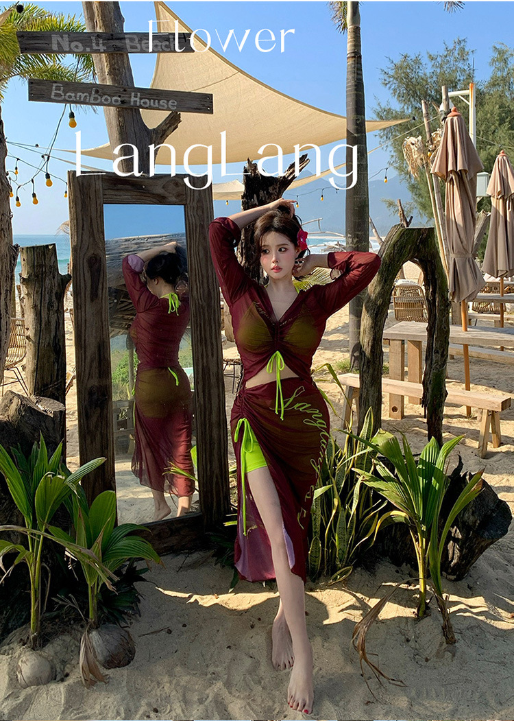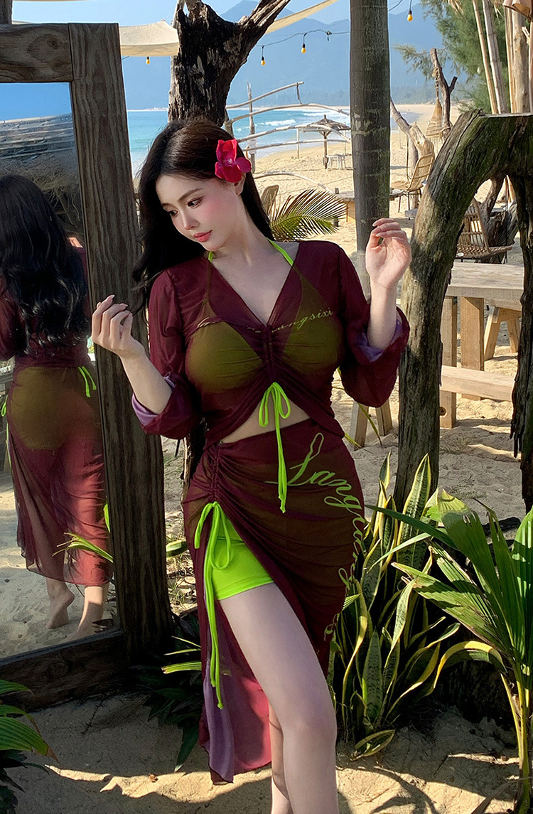 플러스 사이즈 통통녀 수영복 여성용 비키니 3 종 세트 스플릿 온천 슬리밍 비치 섹시한 휴일 긴팔 하이 엔드 센스스토어 가기