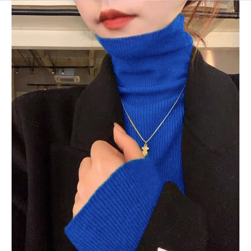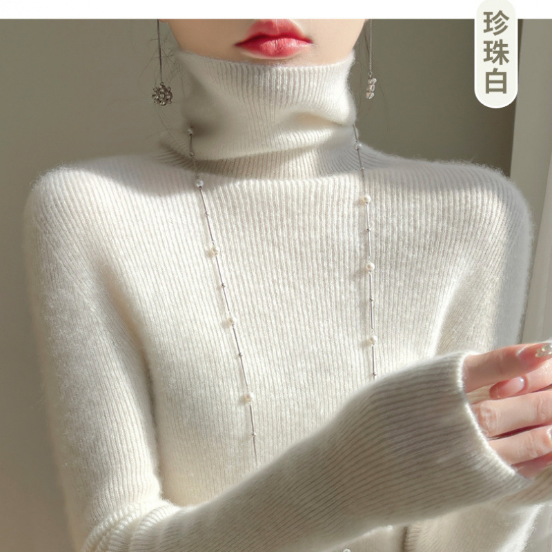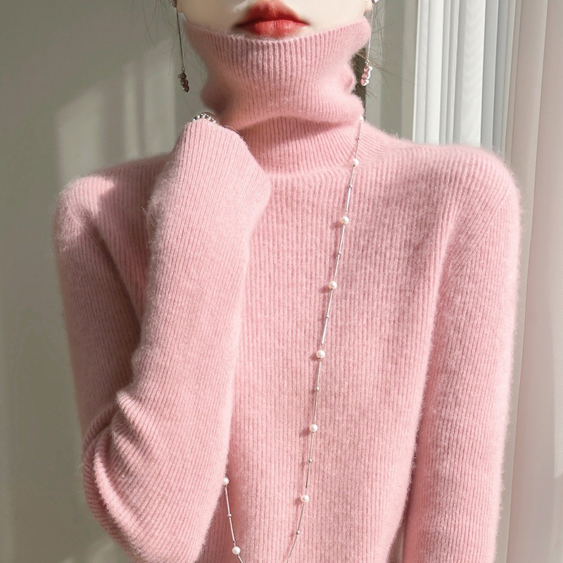 가을과 겨울 프랑스 핑크 터틀넥 스웨터 여성 하이 엔드 타이트 내베이스 더미 칼라 스웨터 스타일라인 탑스토어 가기