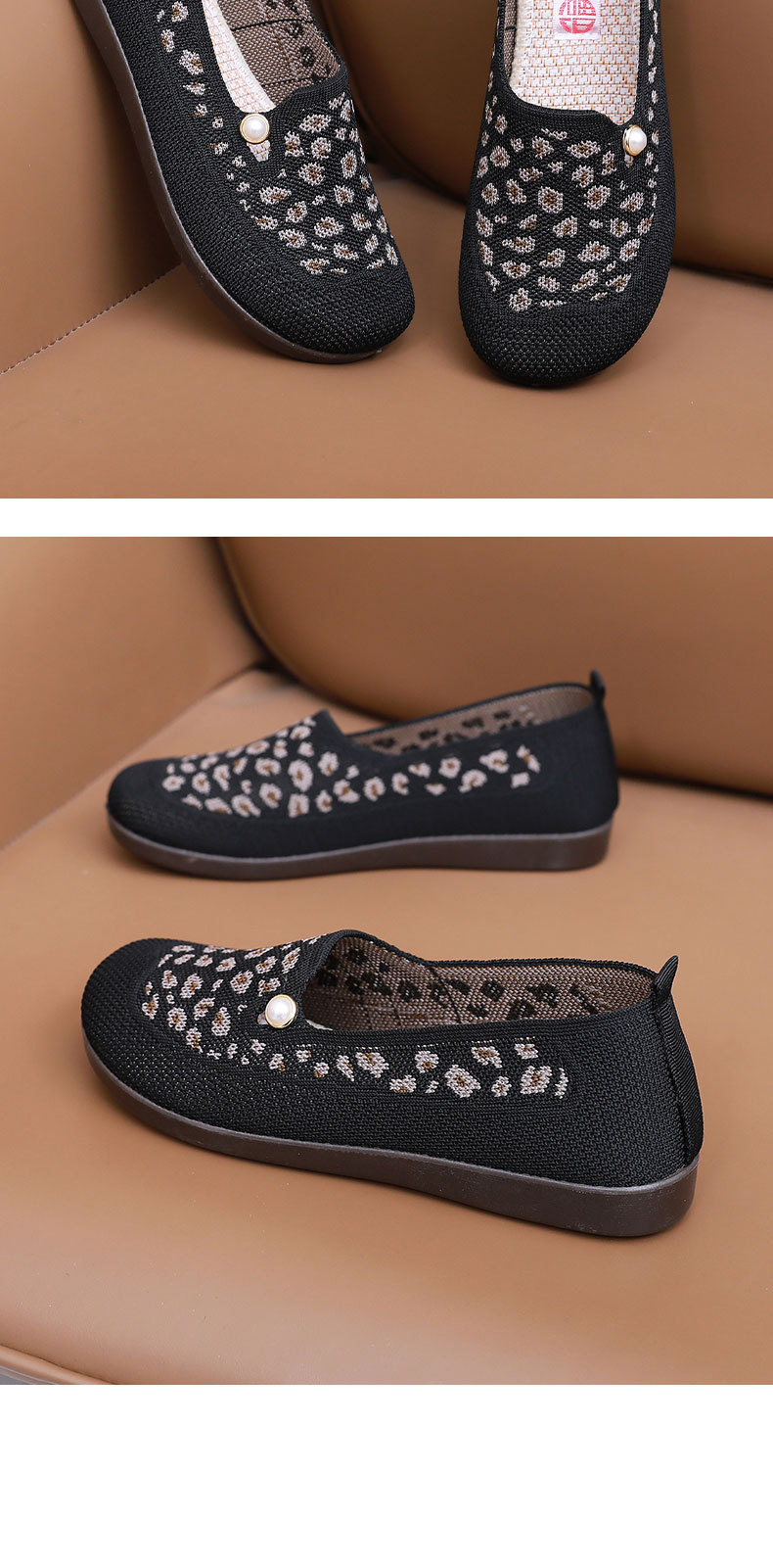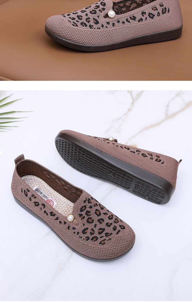 봄과 여름 새로운 오래 된 베이징 천 신발 여성 플라잉 짠 통기성 메쉬 캐주얼 콩 신발 슬립 온 플랫 레오파드 무늬 싱글 레이어 신발스토어 가기