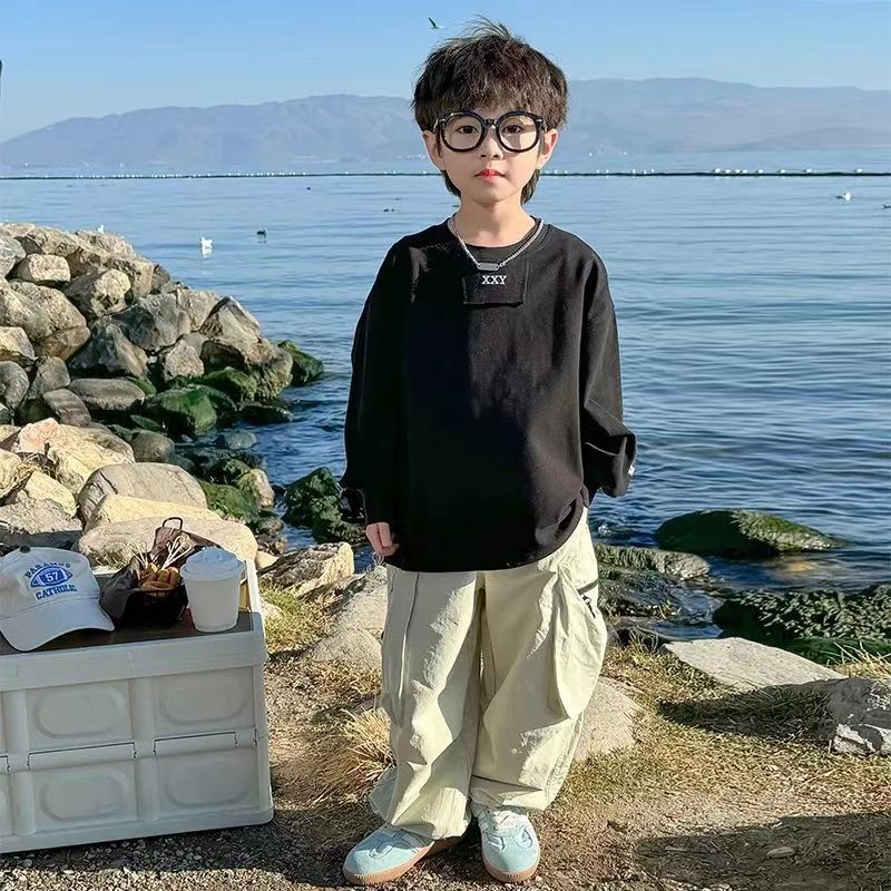 순면 아동복 잘 생긴 긴팔 티셔츠 2025 봄과 가을 패션 올 매치 아기 아동베이스 탑스토어 가기