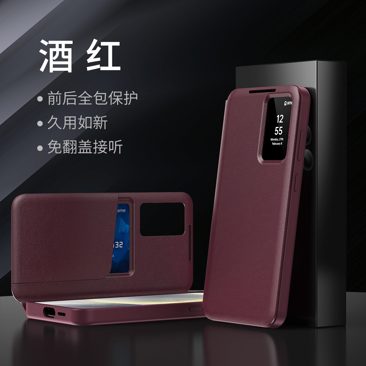 삼성 S25울트라 폰 케이스 S24 플립 프리 답변 S23P 스마트 수면 창 카드 가죽 케이스