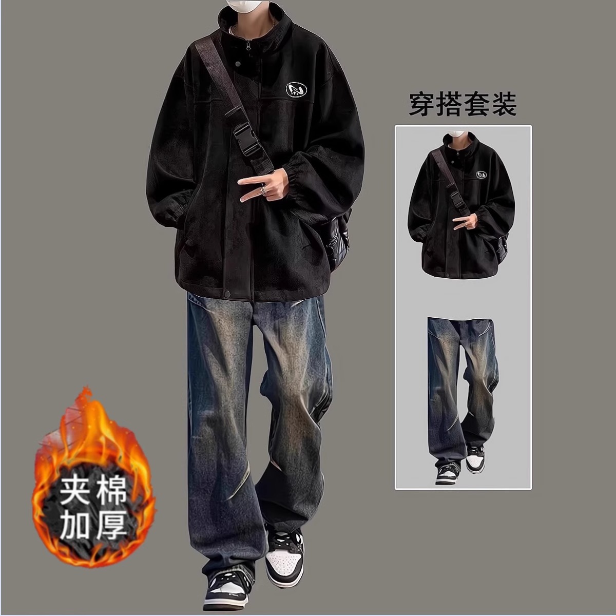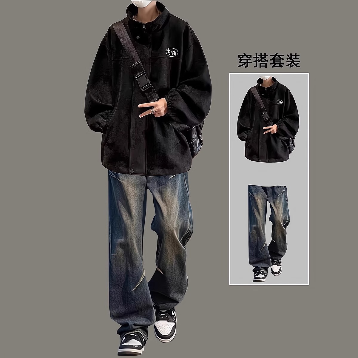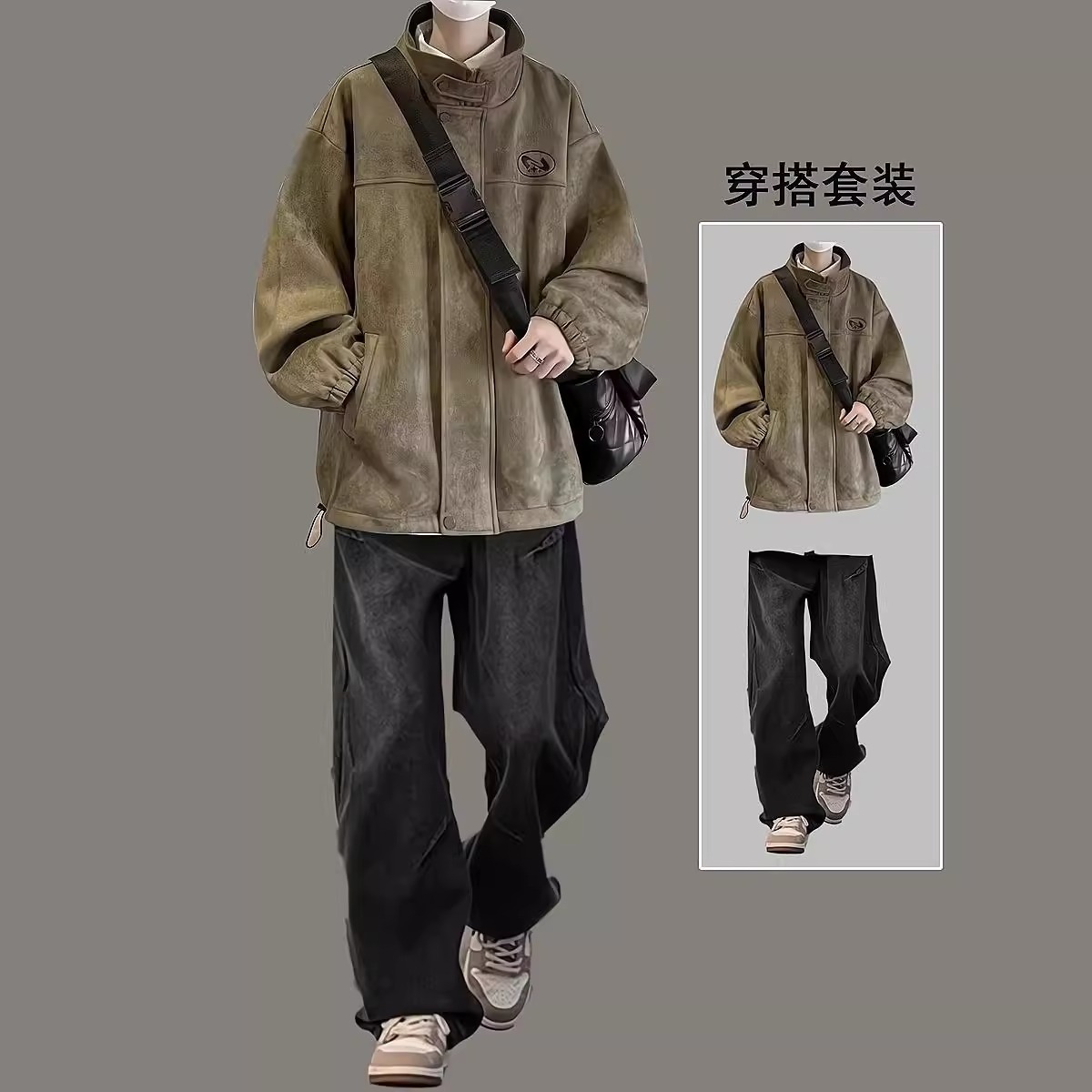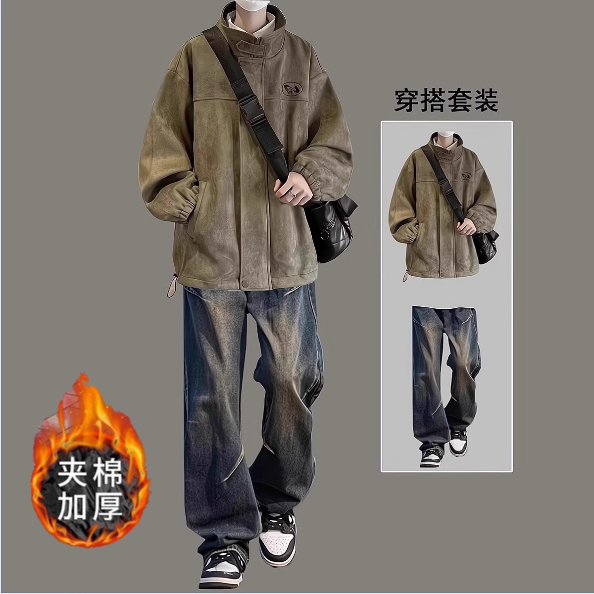 아메리칸 스웨이드 재킷 남자 세트 봄 가을과 겨울 2025 새로운 스타일 재킷 트렌디 브랜드 Yipi 핸섬 칼라 코튼 패딩 코트스토어 가기