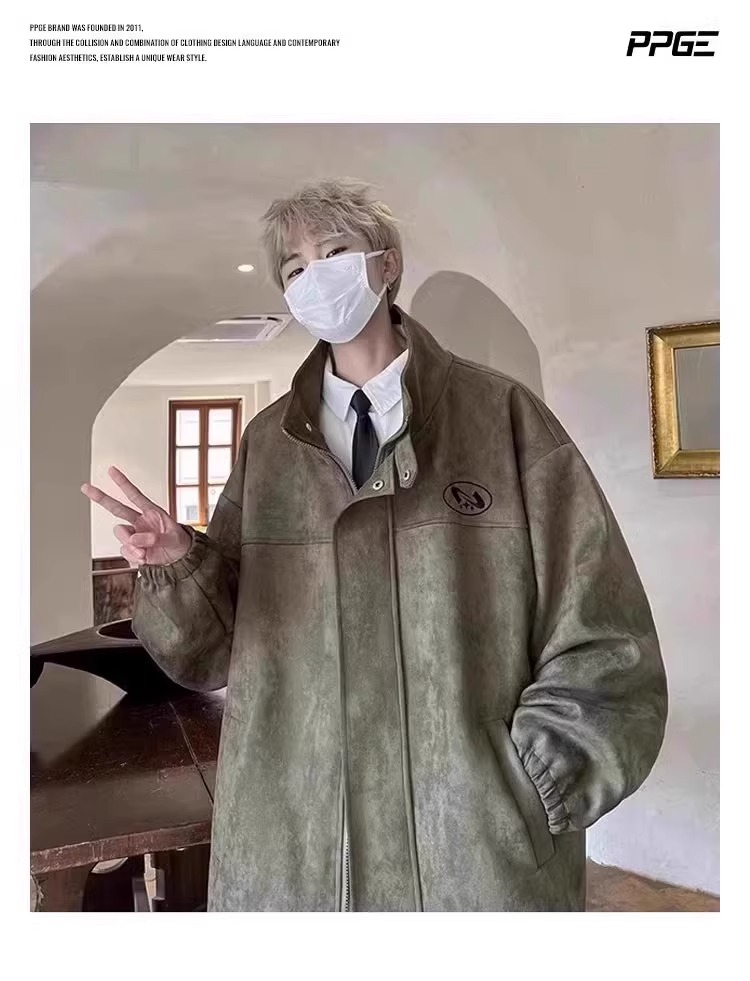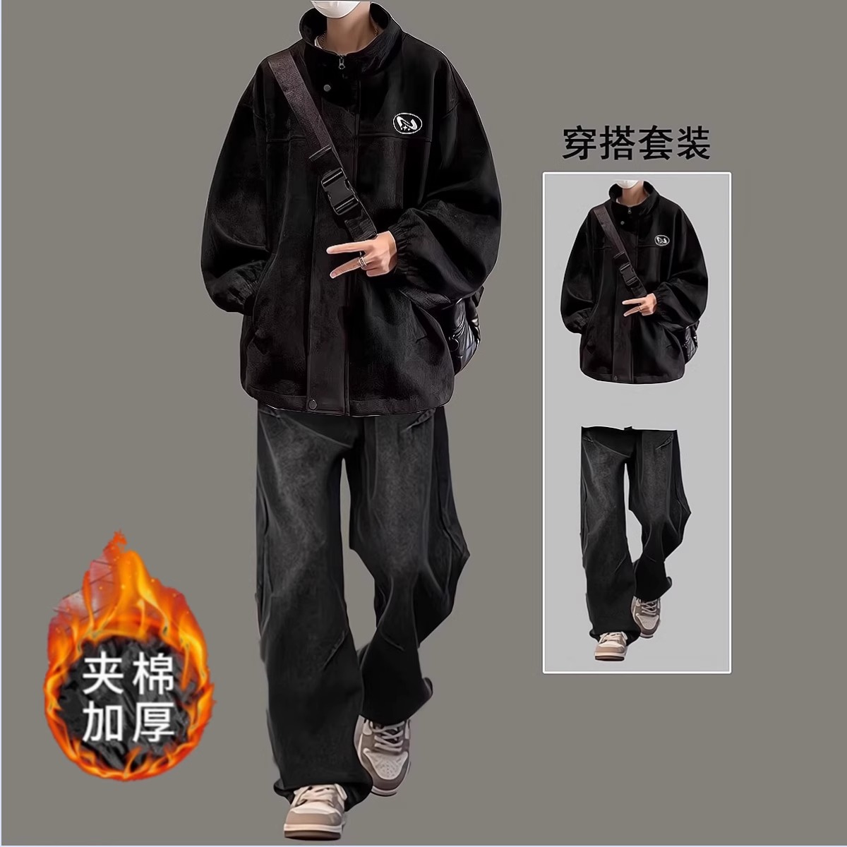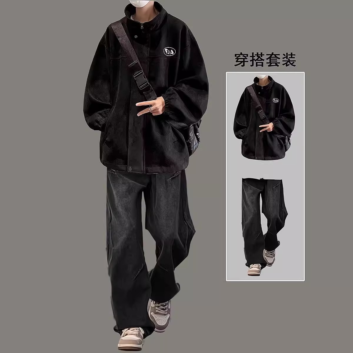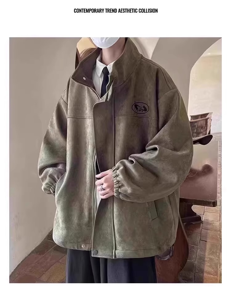 아메리칸 스웨이드 재킷 남자 세트 봄 가을과 겨울 2025 새로운 스타일 재킷 트렌디 브랜드 Yipi 핸섬 칼라 코튼 패딩 코트스토어 가기