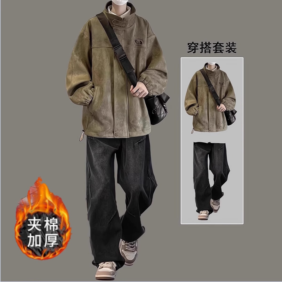 아메리칸 스웨이드 재킷 남자 세트 봄 가을과 겨울 2025 새로운 스타일 재킷 트렌디 브랜드 Yipi 핸섬 칼라 코튼 패딩 코트