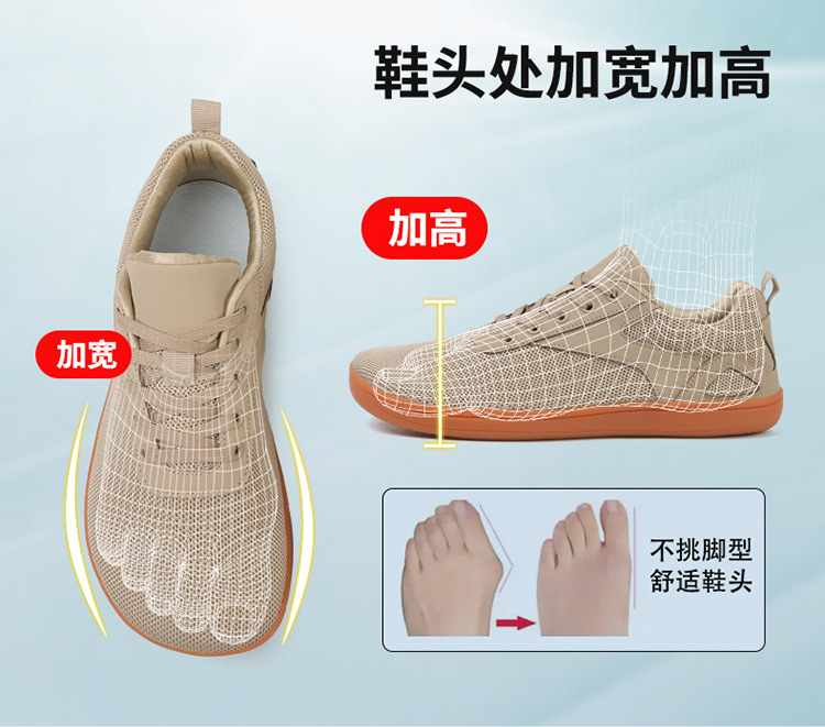 국경 간 핫 세일 2025 새로운 맨발의 넓은 발가락 신발 통기성 편안한 남성과 여성의 가벼운 피트니스 달리기 와이드 와이드 와이드 신발스토어 가기