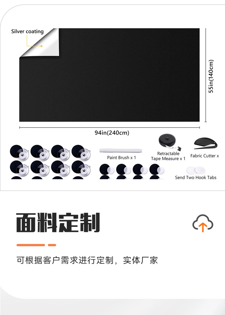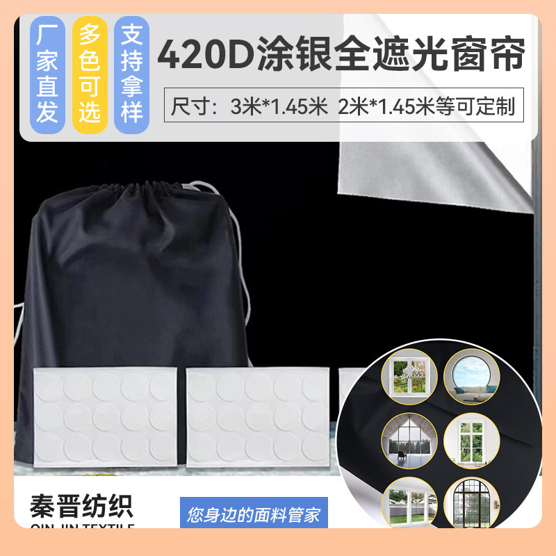 ♩ 420D 옥스포드 천은 코팅 완전 암막 커튼 천 휴대용 여행용 소형 커튼은 자체 접착 암막으로 절단 가능스토어 가기
