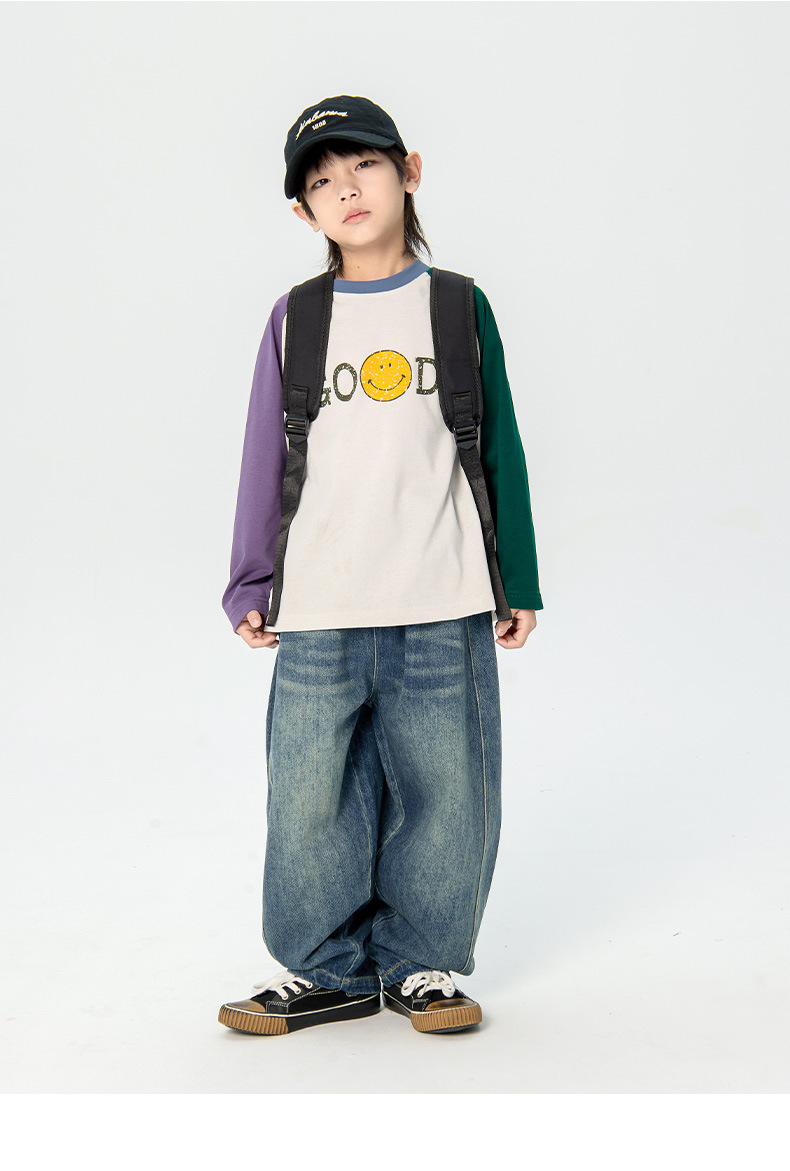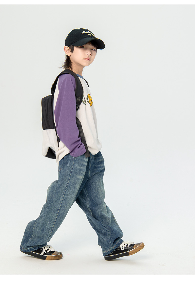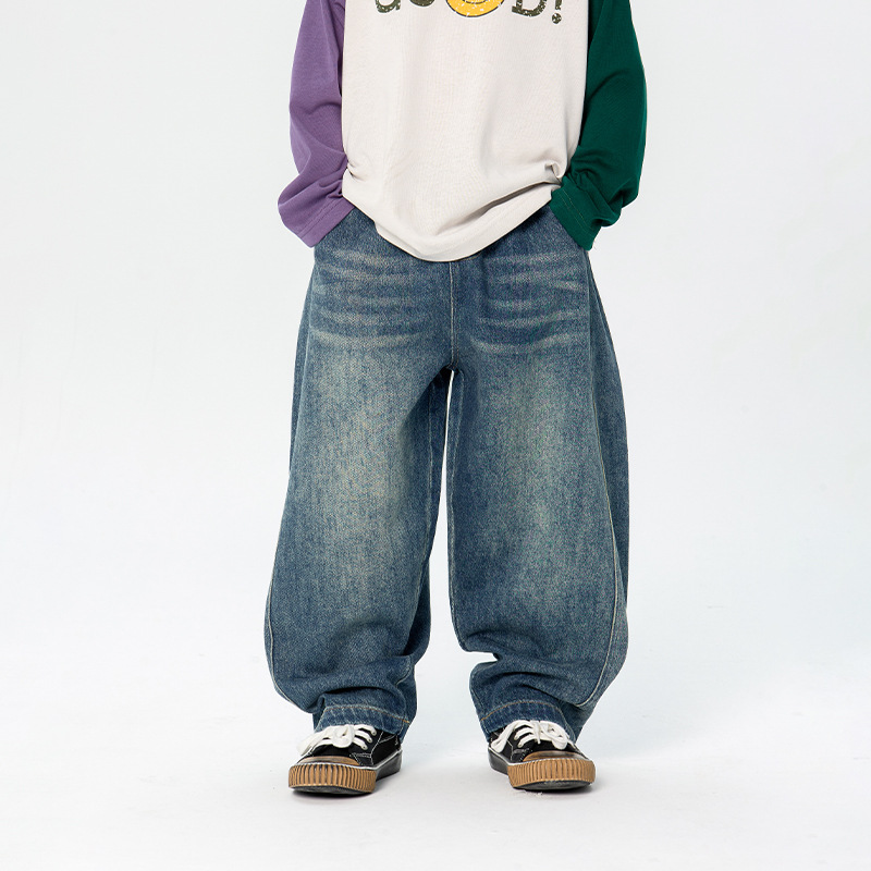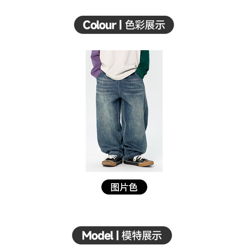 남학생 청바지 2025 봄 새 일본과 한국 어린이 스트레이트 캐주얼 바지 중소 어린이 패션 무 바지스토어 가기