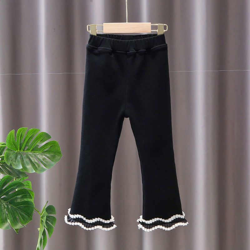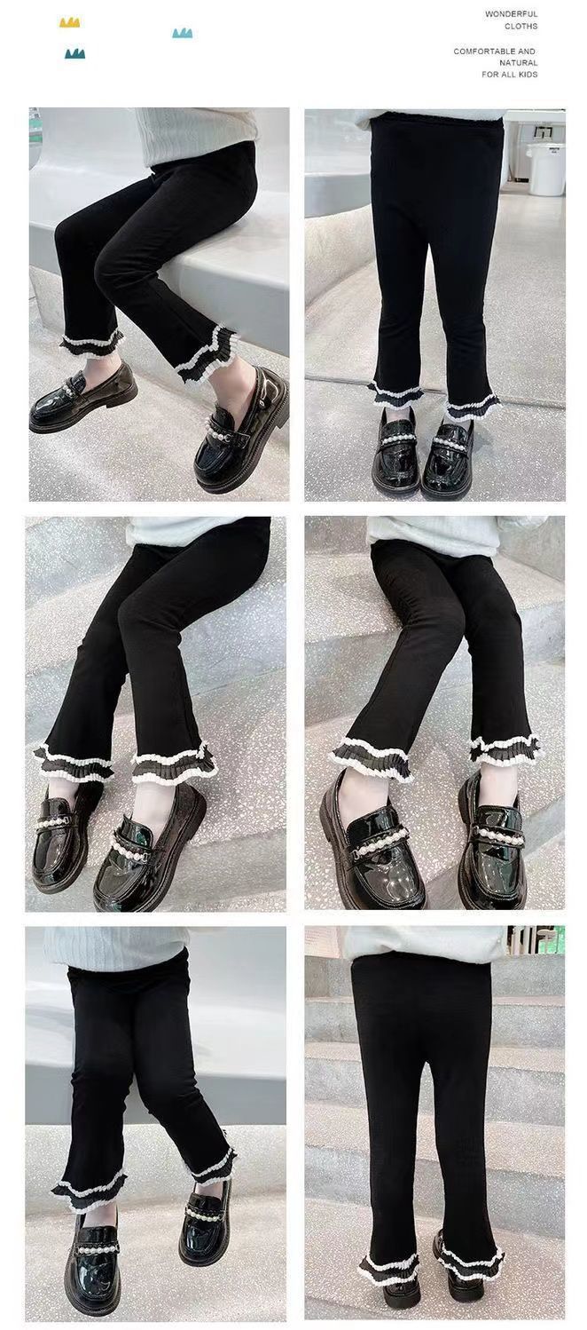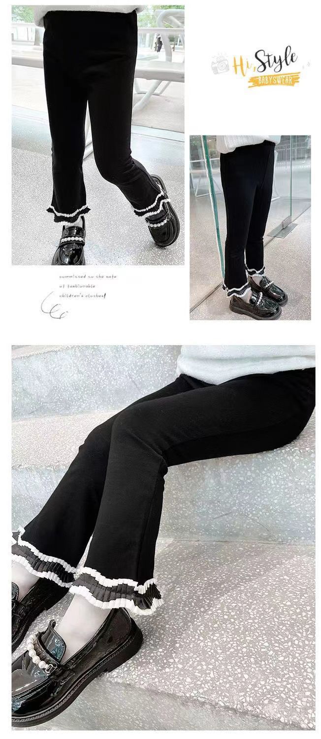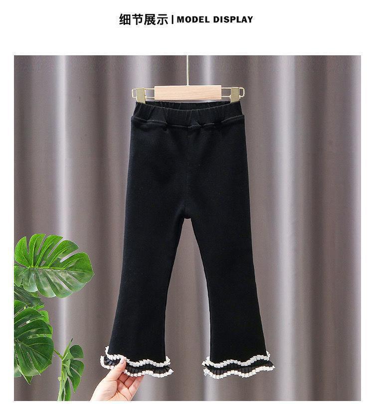 소녀 플라워 바지 봄과 가을 2022 새로운 중소 어린이 검은 바지 외부 바지 바지 아기 소녀를위한 모든 경기 캐주얼 바지