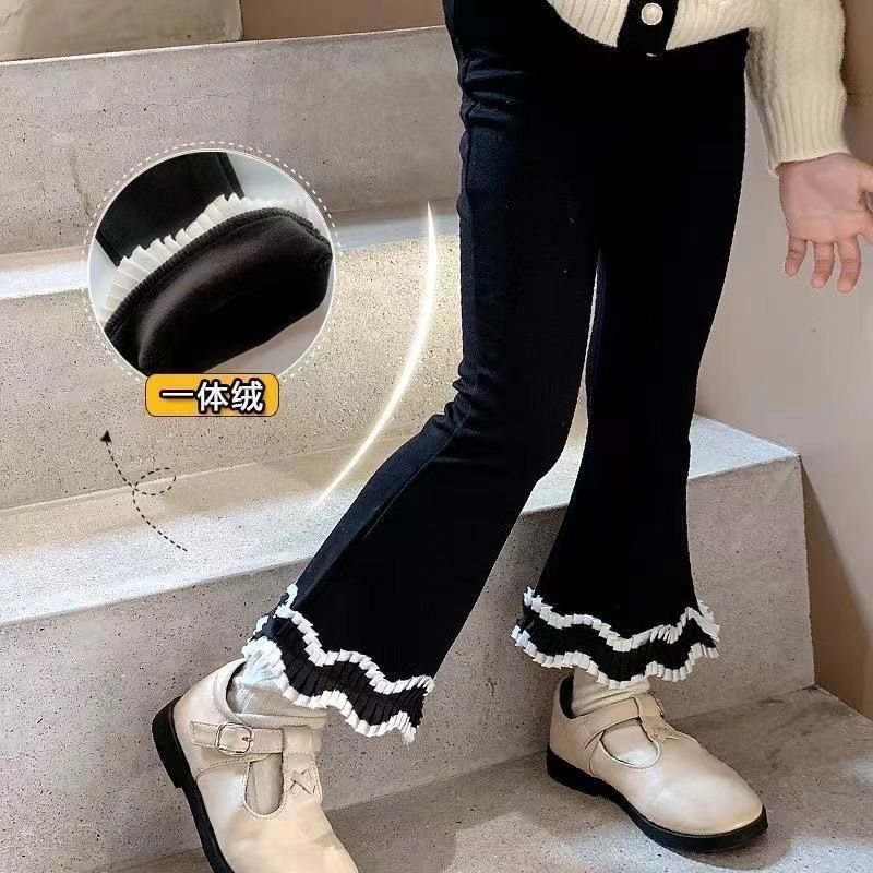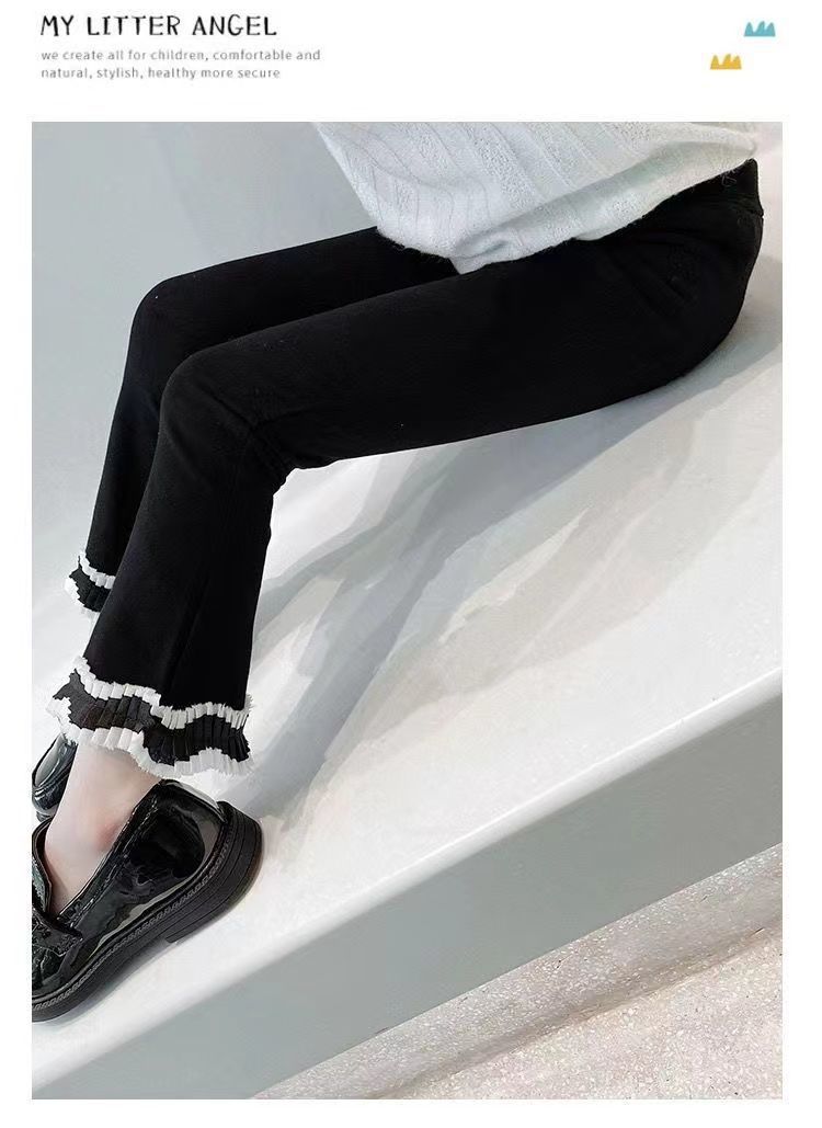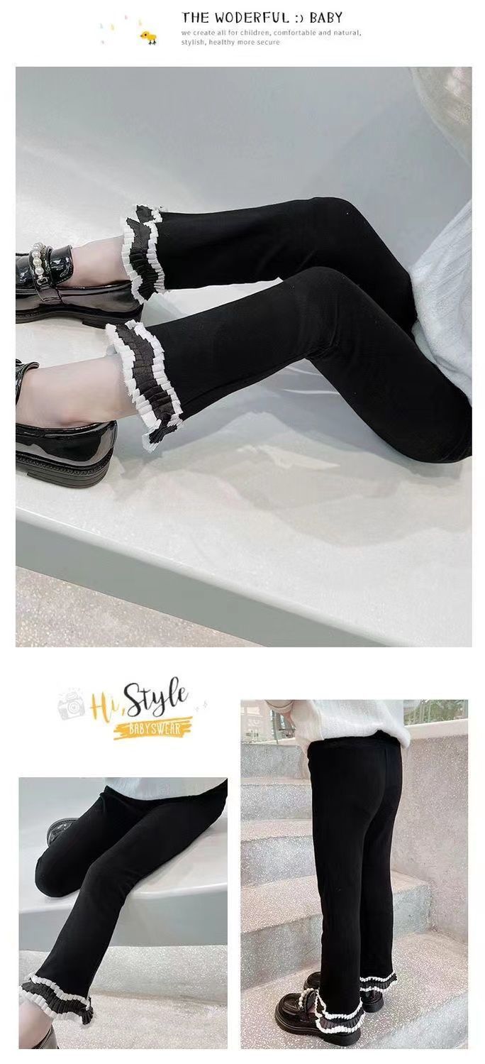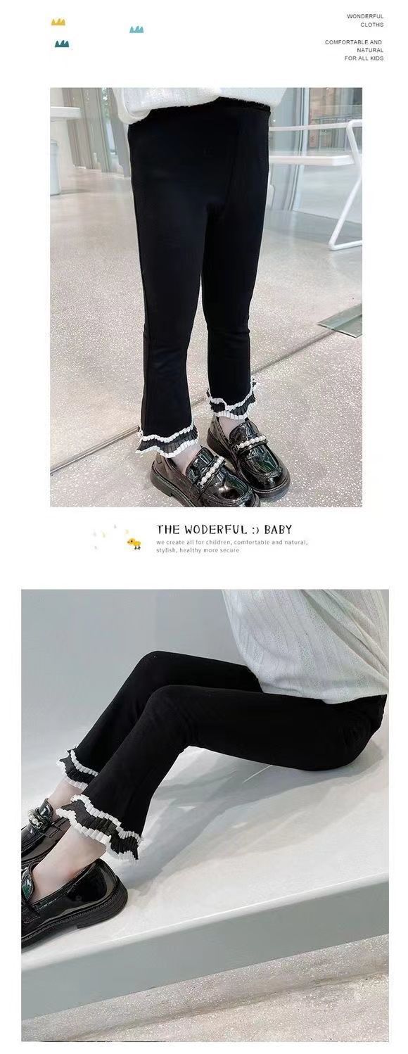소녀 플라워 바지 봄과 가을 2022 새로운 중소 어린이 검은 바지 외부 바지 바지 아기 소녀를위한 모든 경기 캐주얼 바지