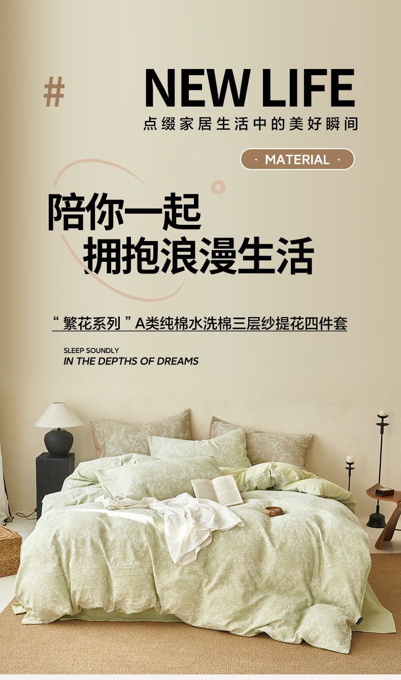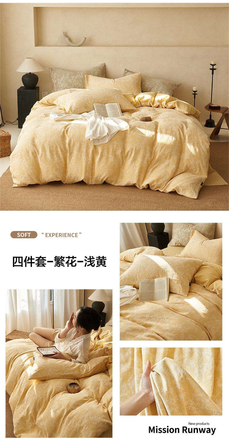 2025 새로운 면 3 층 원사 침대 4 종 세트 코튼 자카드 하이 엔드 침대 시트 퀼트 커버 라이트 럭셔리 침구 3스토어 가기