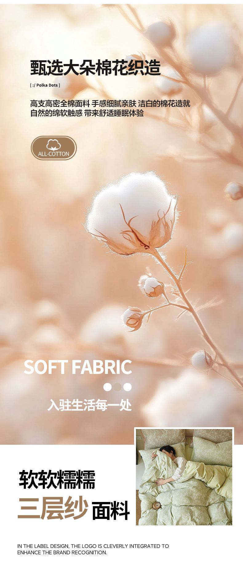 • 플라워-베이지 [A급 면 3겹사 원단-피부친화적이고 통기성이 좋음]