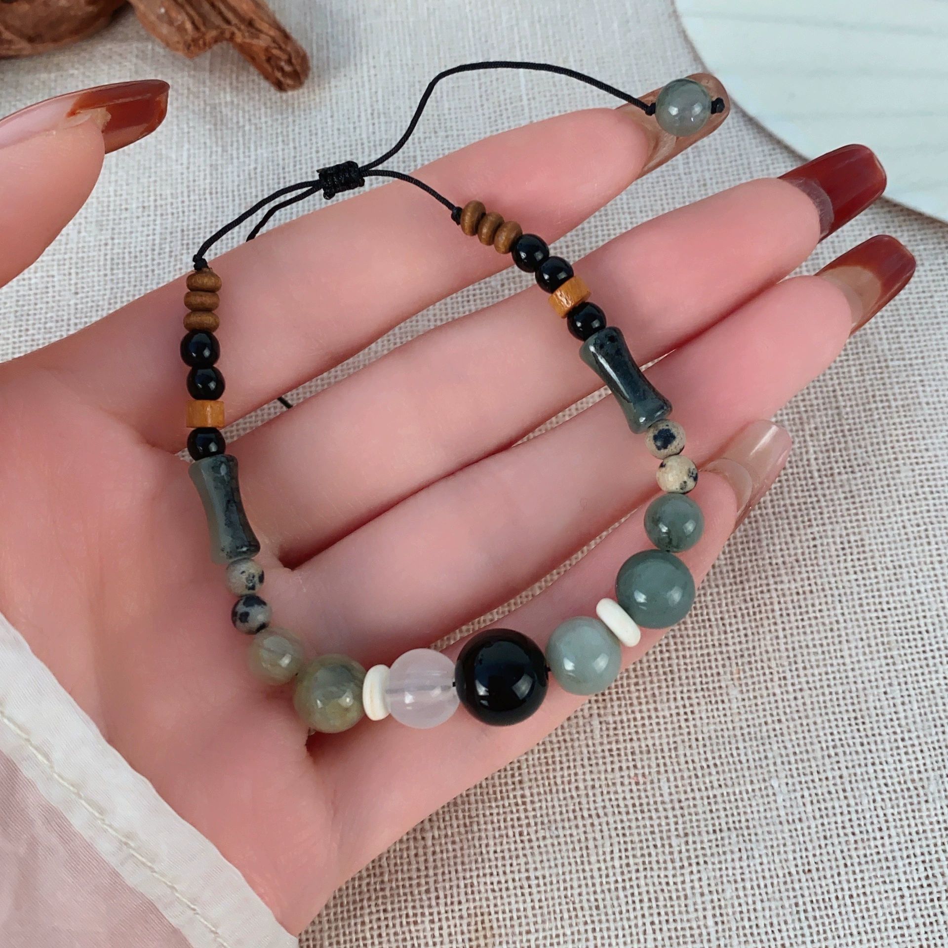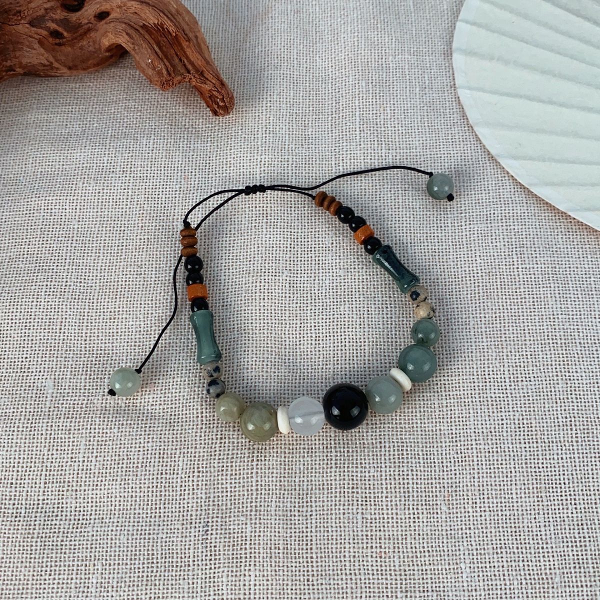 새로운 중국 스타일 민족 스타일 자연석 구슬 팔찌 여성용 골동품 스타일 맞춤형 짠 팔찌 빈티지 올 매치 팔찌