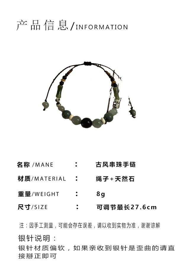 새로운 중국 스타일 민족 스타일 자연석 구슬 팔찌 여성용 골동품 스타일 맞춤형 짠 팔찌 빈티지 올 매치 팔찌스토어 가기