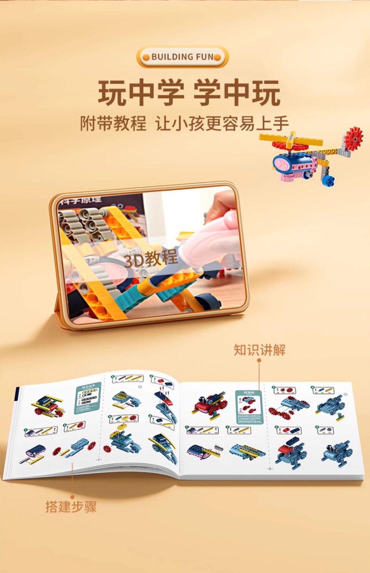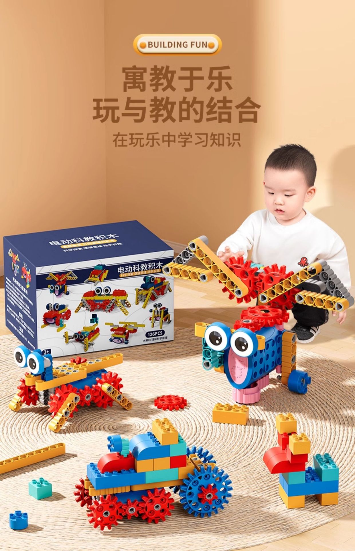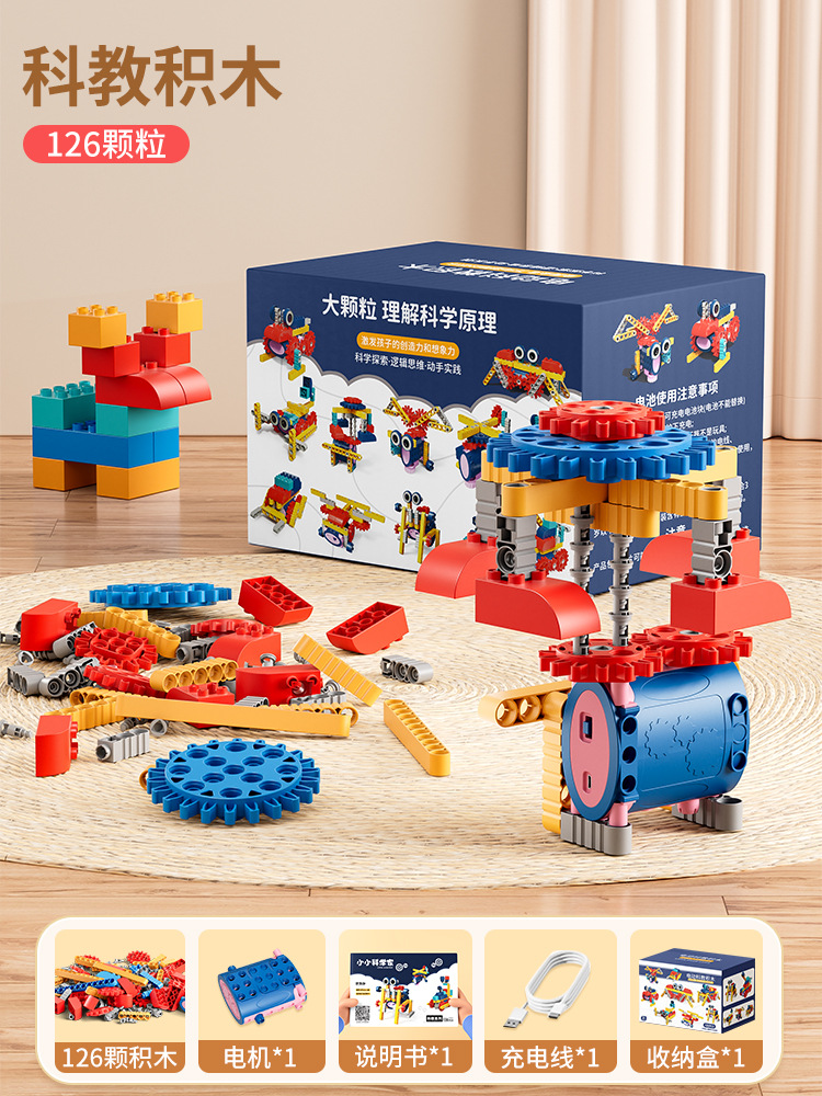 대형 입자 건물 블록 전기 기어 장난감 어린이 과학 및 교육 건물 블록 기계 조립 장난감 유치원 기관 교육스토어 가기