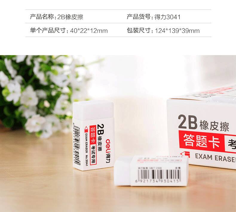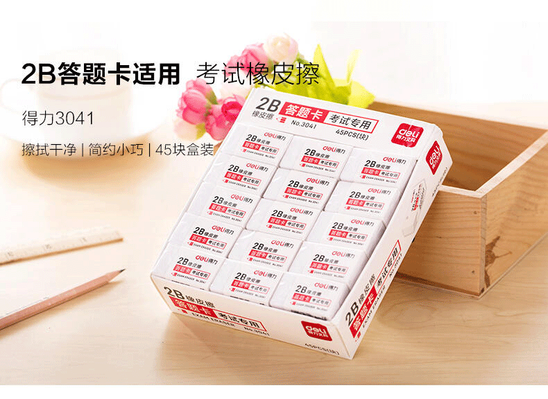 델리 문구 3041 심지어 3 위안 2B 시험 지우개 시험 지우개 2B 지우개 학생 용품 도매스토어 가기