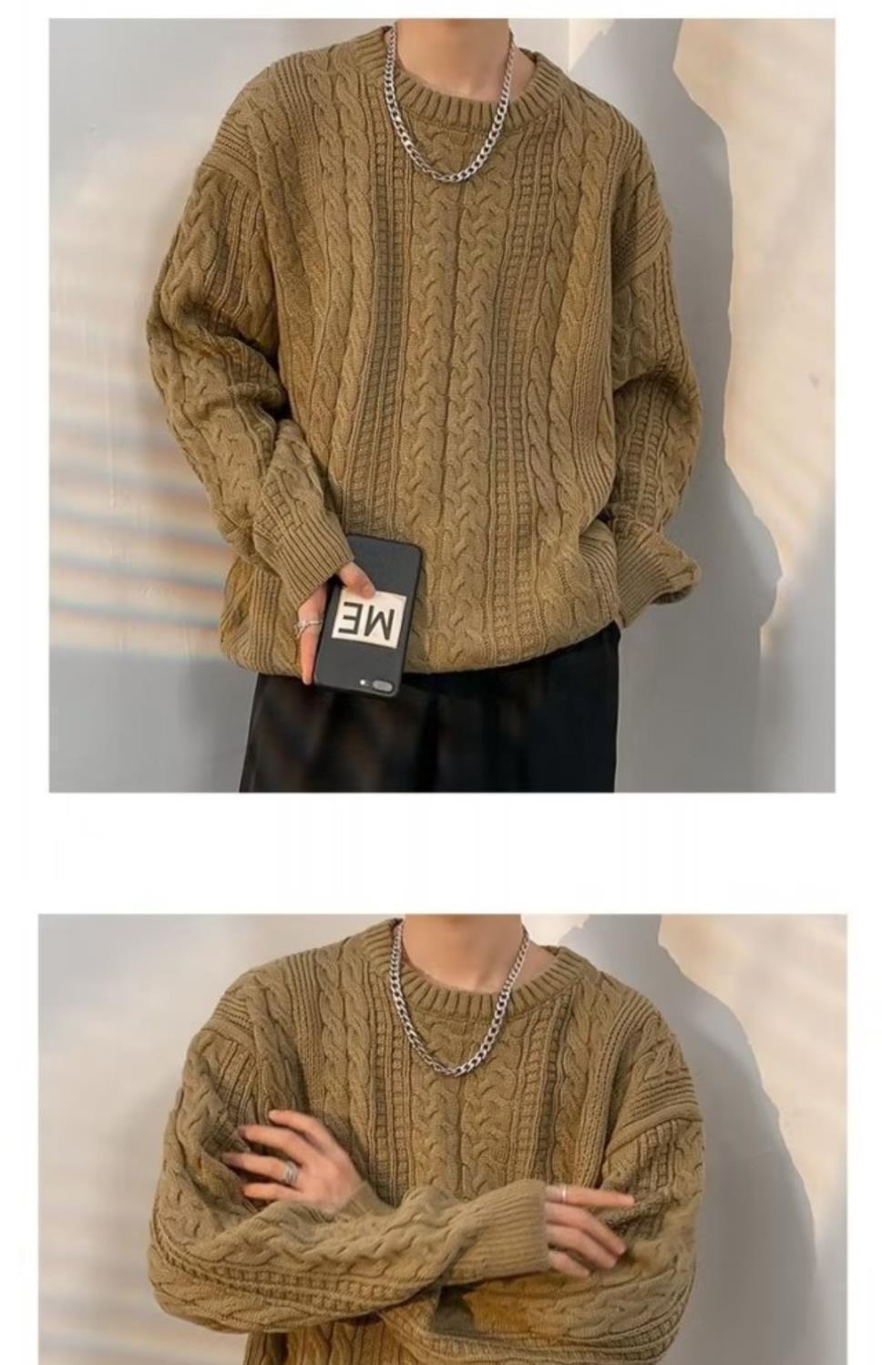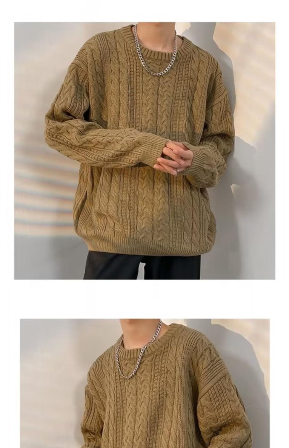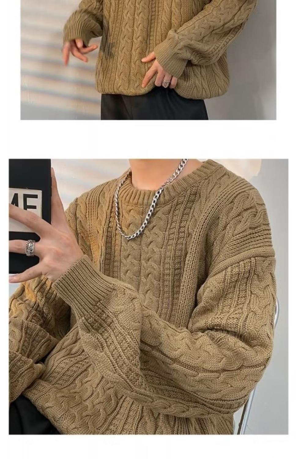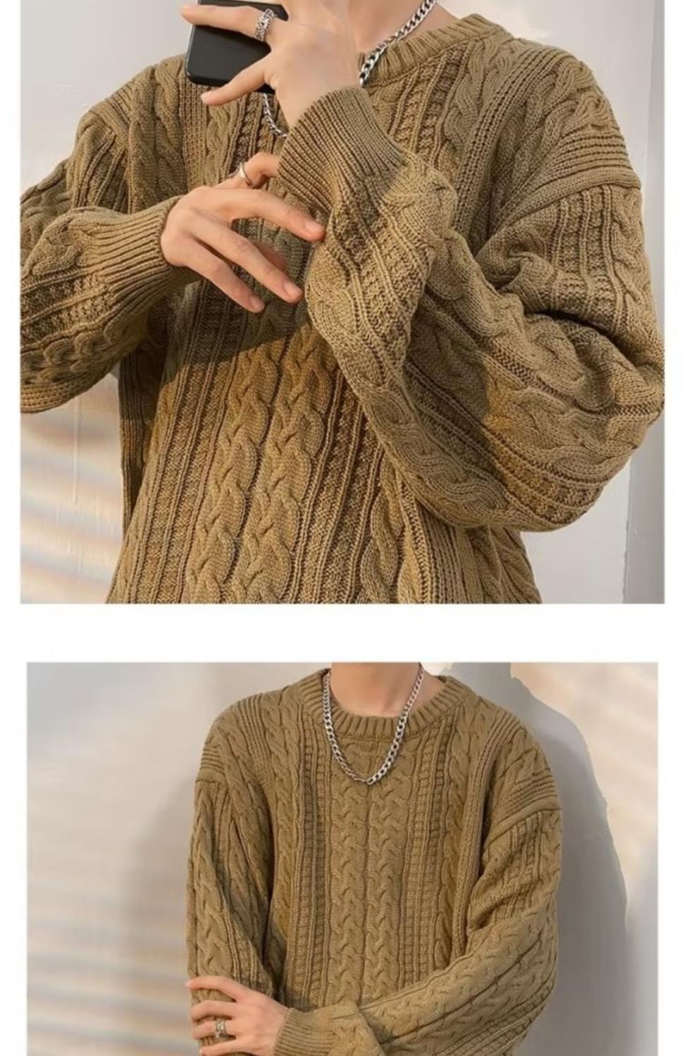 트위스트 스웨터 남자 라운드 넥 루즈 트렌디 브랜드 가을과 겨울 빈티지 스웨터 홍콩 스타일의 트렌디 캐주얼 스웨터스토어 가기