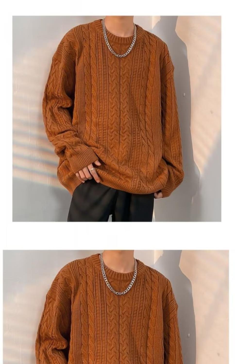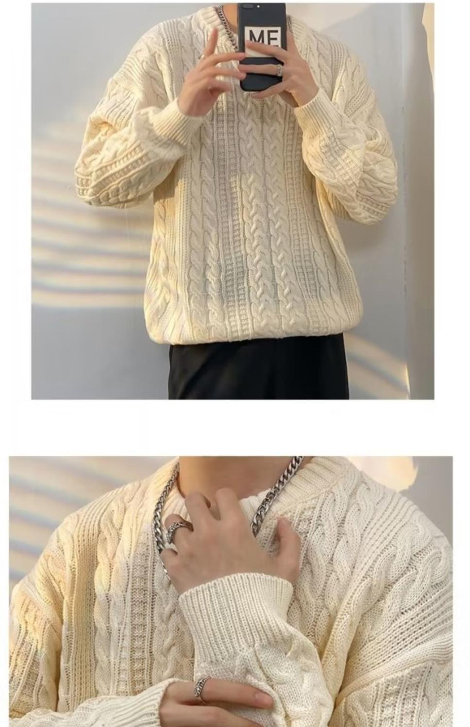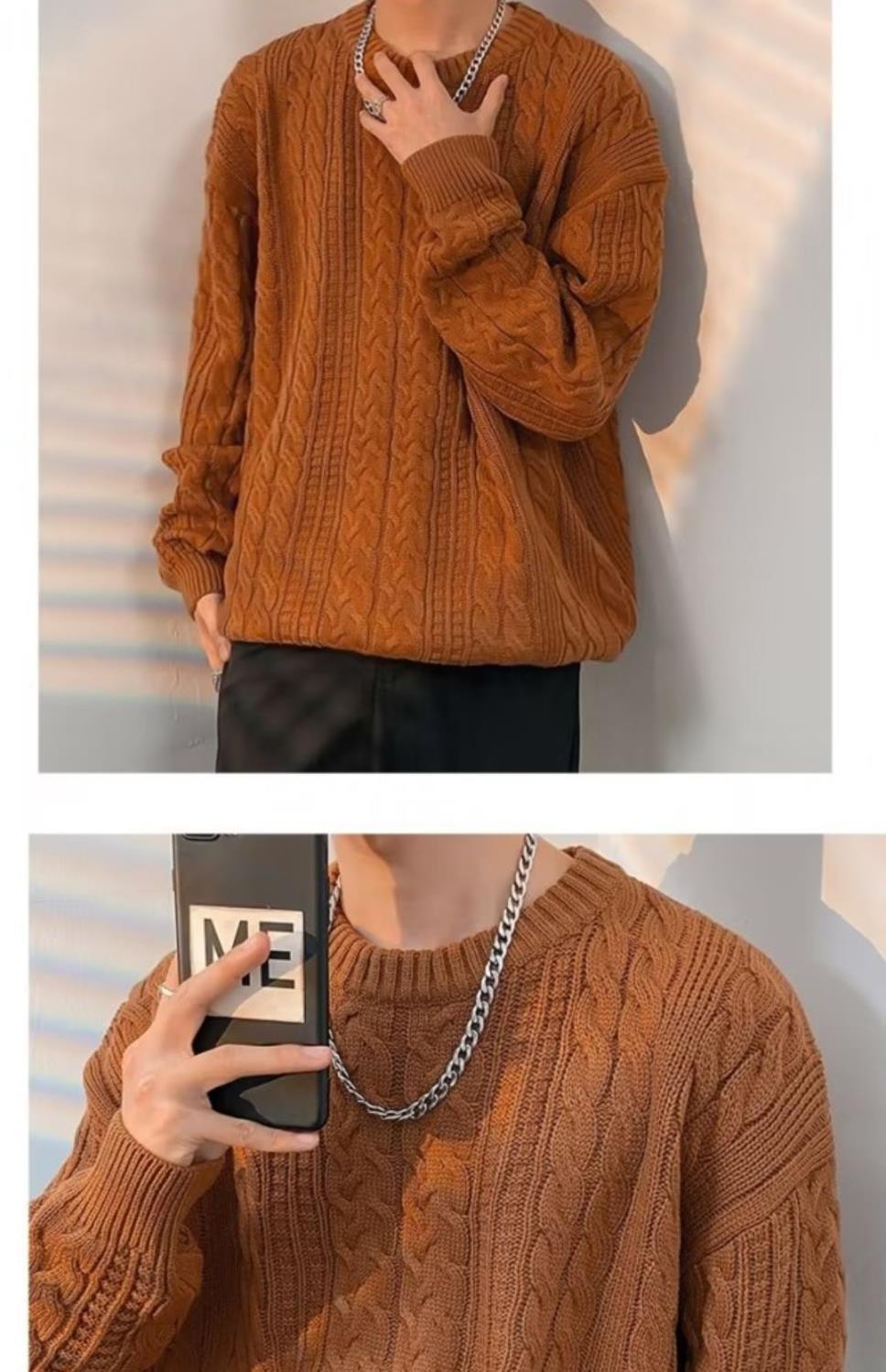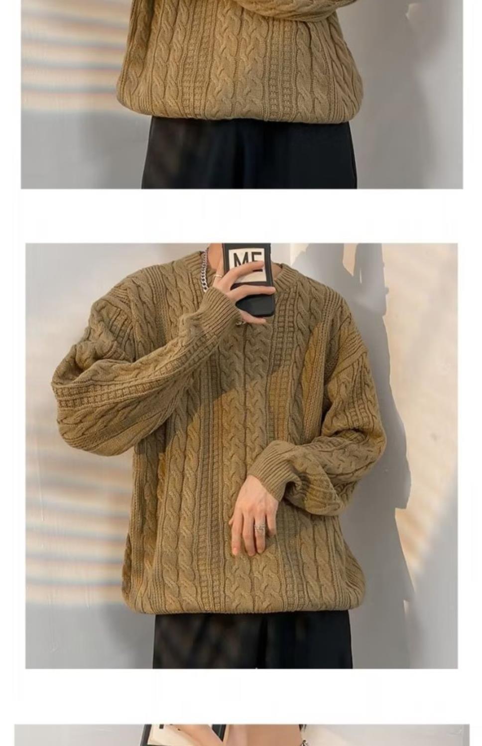 트위스트 스웨터 남자 라운드 넥 루즈 트렌디 브랜드 가을과 겨울 빈티지 스웨터 홍콩 스타일의 트렌디 캐주얼 스웨터스토어 가기