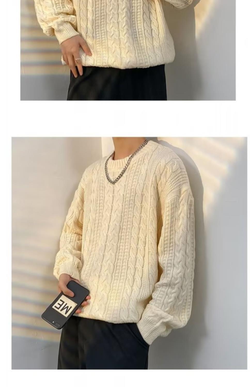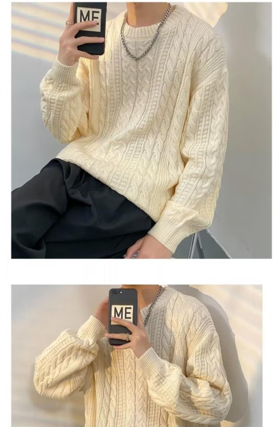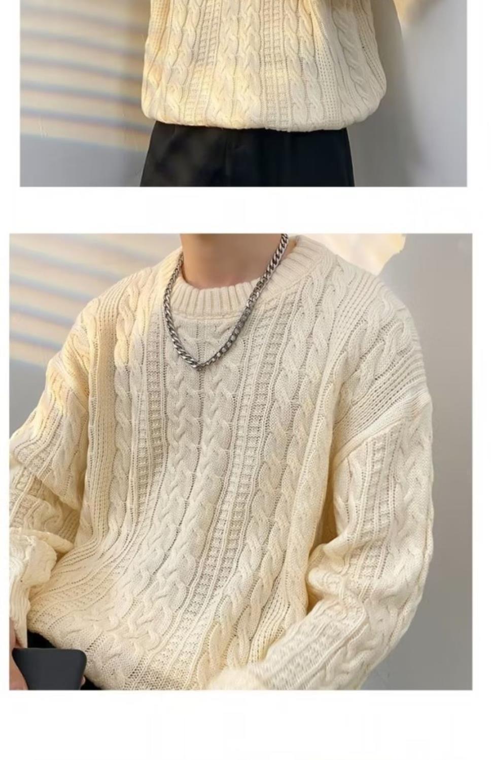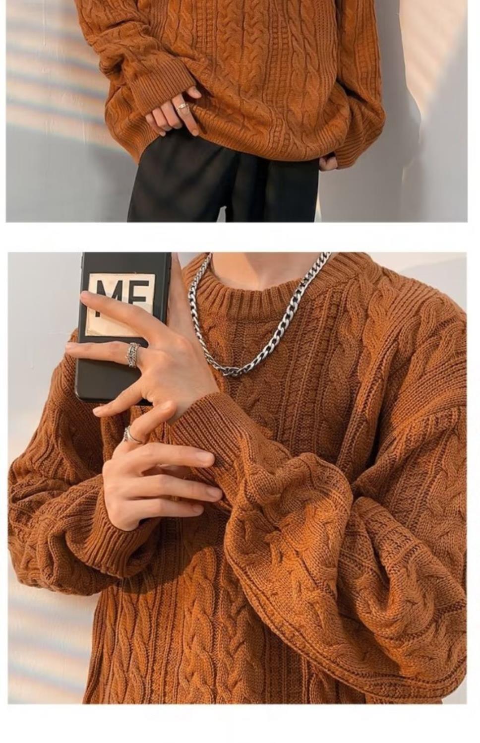 트위스트 스웨터 남자 라운드 넥 루즈 트렌디 브랜드 가을과 겨울 빈티지 스웨터 홍콩 스타일의 트렌디 캐주얼 스웨터스토어 가기