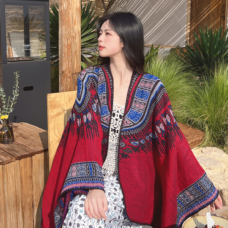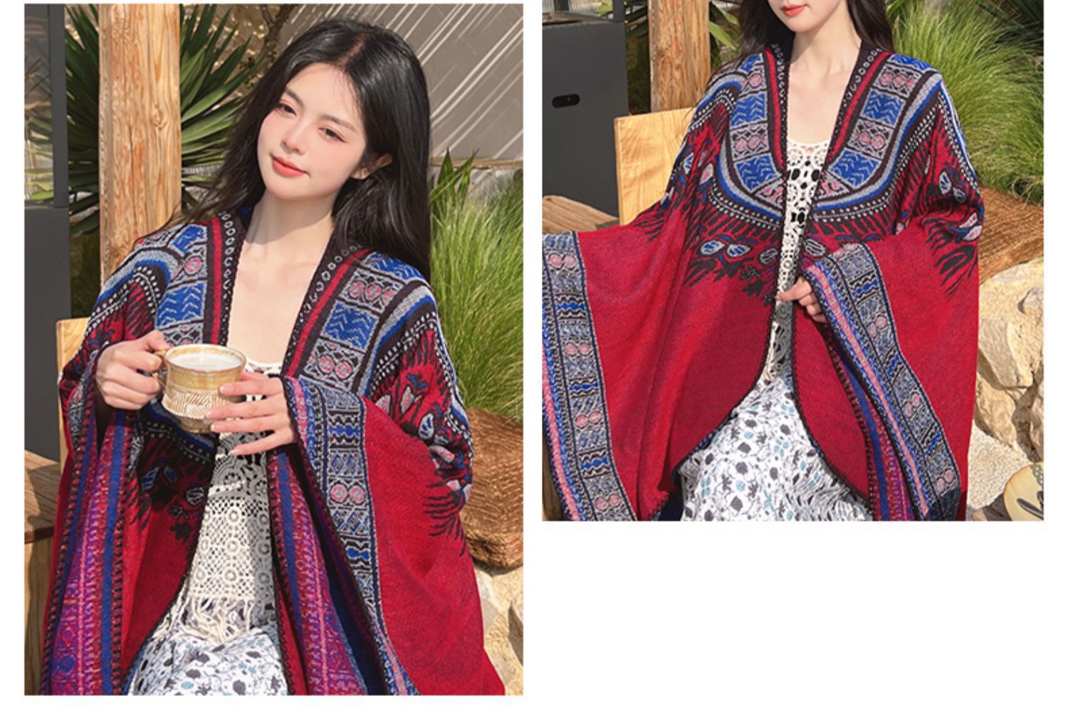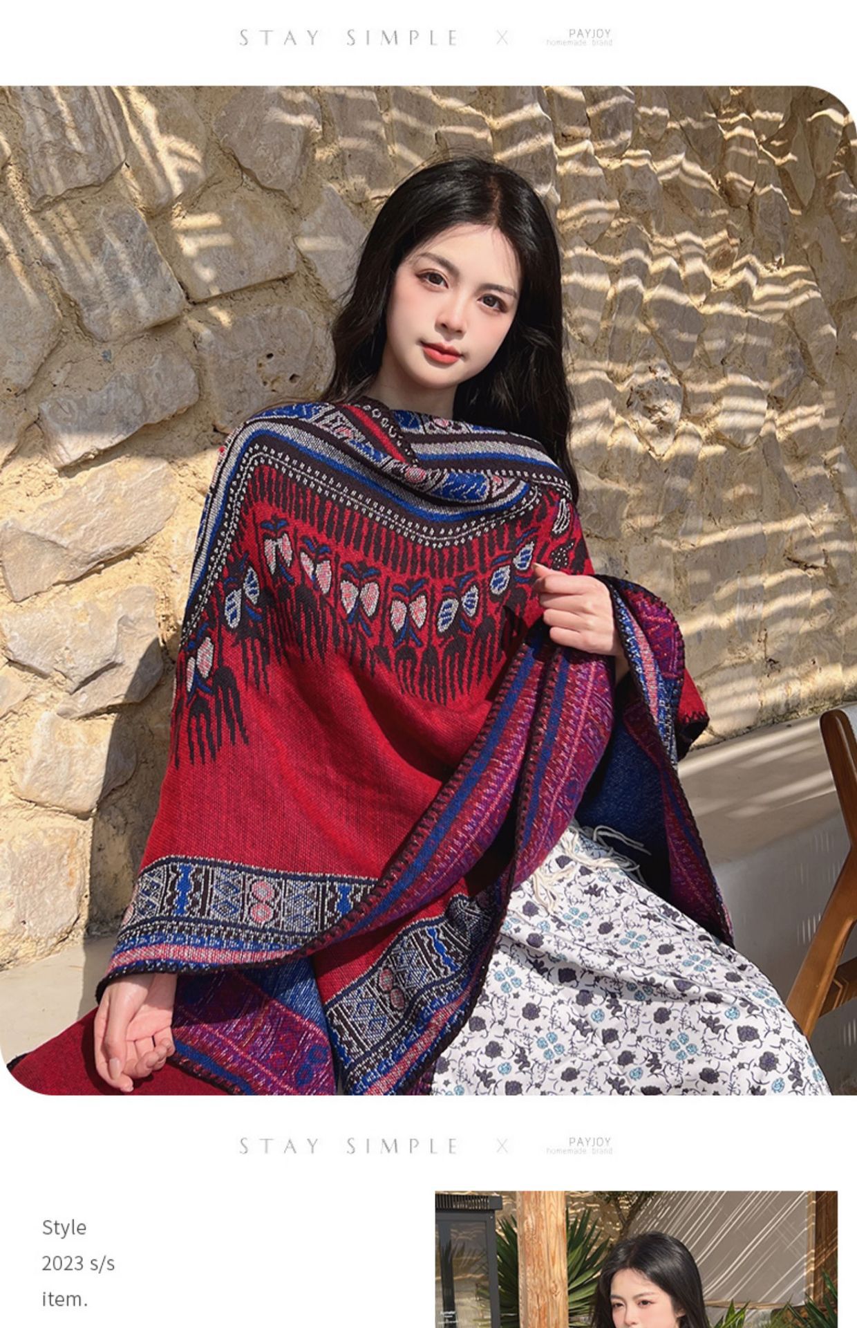 민족 스타일 윈난 하이 엔드 칭하이 목도리 여성의 2024 새로운 스타일 외투 니트 망토 선 스크린 담요 티베트 스카프스토어 가기