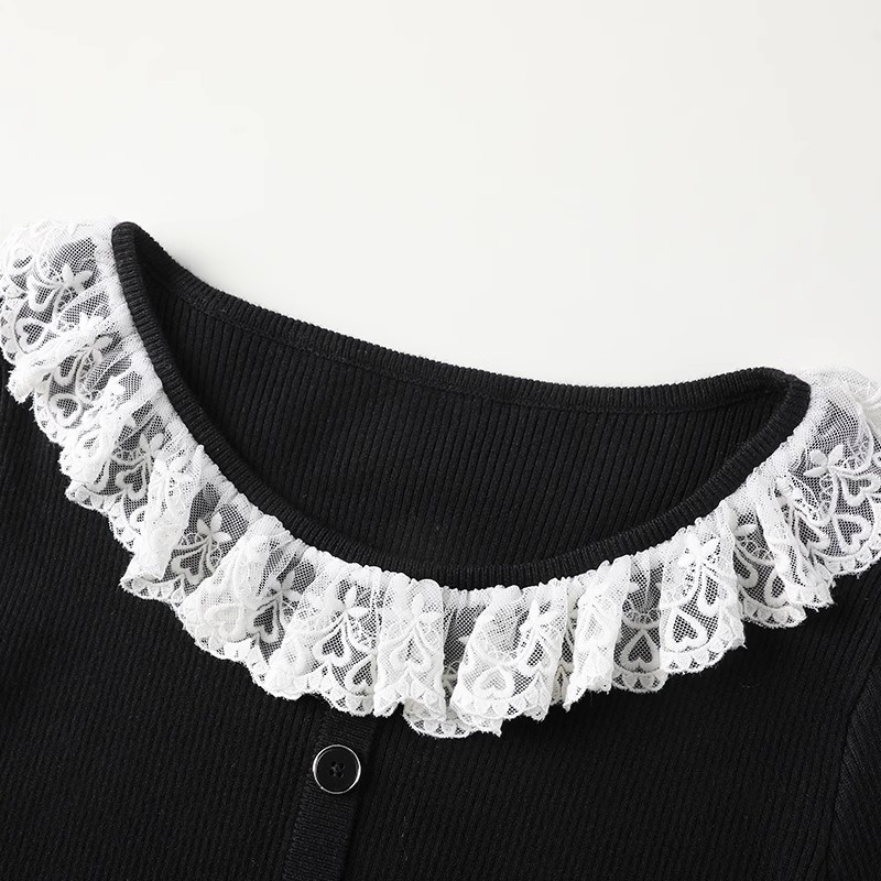샤오 샹 펑 니트 스웨터 여성의 2025 봄 새로운 디자인 레이스 최고 가을베이스 셔츠 KSA2501010