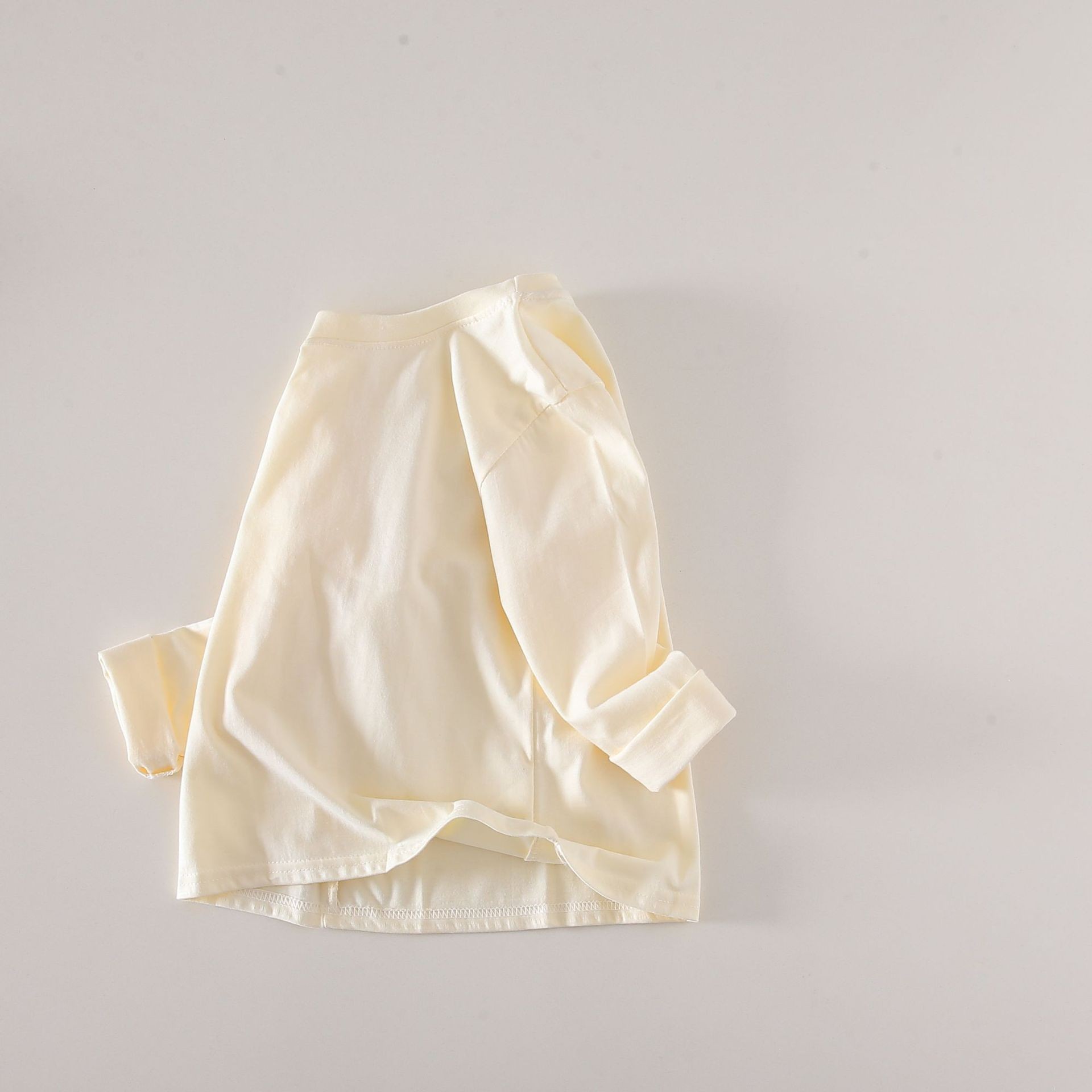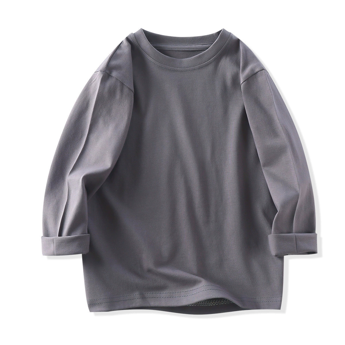 새로운 봄과 가을 어린이 기지 셔츠 순면 소년의 흰색 긴 소매 중대형 어린이 티셔츠 아기 여성 크루 넥 탑