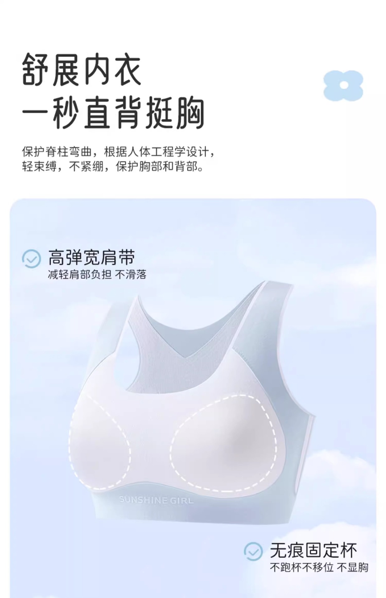 사춘기 소녀 개발 속옷 학생 소녀 조끼 중학교 고등학교 스포츠 브라 추적없는 여름 얇은스토어 가기