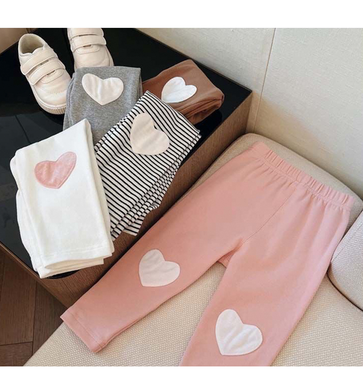 2025 봄 가을 아기 레깅스 한국 사랑 자수 어린이 큰 레깅스 귀여운 아기 밖으로 유행 바지스토어 가기